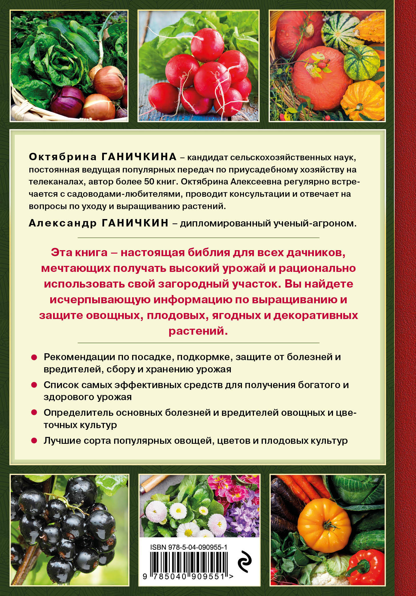 Эта книга для тех, кто любит, когда на столе свои помидоры с огурцами, ароматные яблоки и груши, с кустов свисают гроздьями крупные ароматные ягоды малины и смородины! Чтобы огород и теплица, плодовый сад и ягодники радовали вас своим безупречным урожаем и прекрасным внешним видом, нужно правильно возделывать землю и вкладывать немало труда, ухаживая за растениями. Многолетнему опыту известного автора и телеведущей популярных программ Октябрины Ганичкиной доверяют тысячи садоводов и дачников. В этом издании существенно обновлен раздел по защите растений от вредителей, сорняков и болезней. Даны профессиональные советы по применению удобрений в целях сохранения и увеличения урожая, даны оптимальные количества эффективных препаратов по обработке участков. Вы найдете уникальные методы выращивания овощей в теплице и открытом грунте, научитесь правильно готовить почву под рассаду и посадки взрослых растений, своевременно убирать урожай и заготавливать его к зиме.| Издательство | ООО "Издательство "Эксмо" |