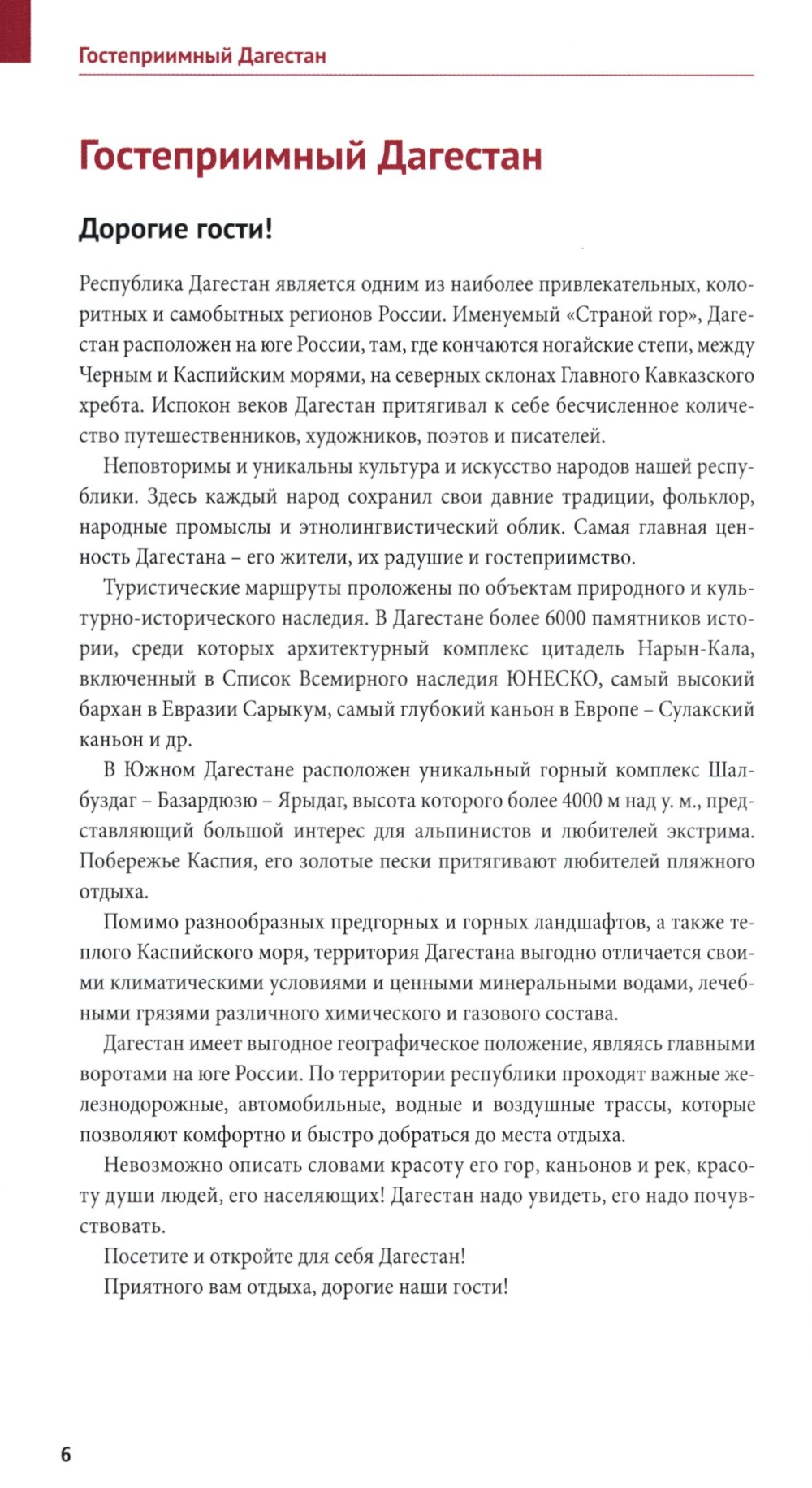 В год празднования 100-летнего юбилея со дня рождения народного поэта Дагестана, прозаика, переводчика, публициста, общественного деятеля Расула Гамзатова издательство «Аякс-Пресс» совместно с Министерством по туризму и народным художественным промыслам Республики Дагестан подготовило актуализированный путеводитель «Дагестан». В нём представлены 12 брендовых туристских маршрутов, уникальные фотографии, иллюстрирующие материал, карты-схемы. Раздел с краткой историей республики, очерк о культуре и искусстве, описание традиционных блюд дагестанской кухни позволит получить важную информацию о гостеприимной республике.| Издательство | Аякс-Пресс |