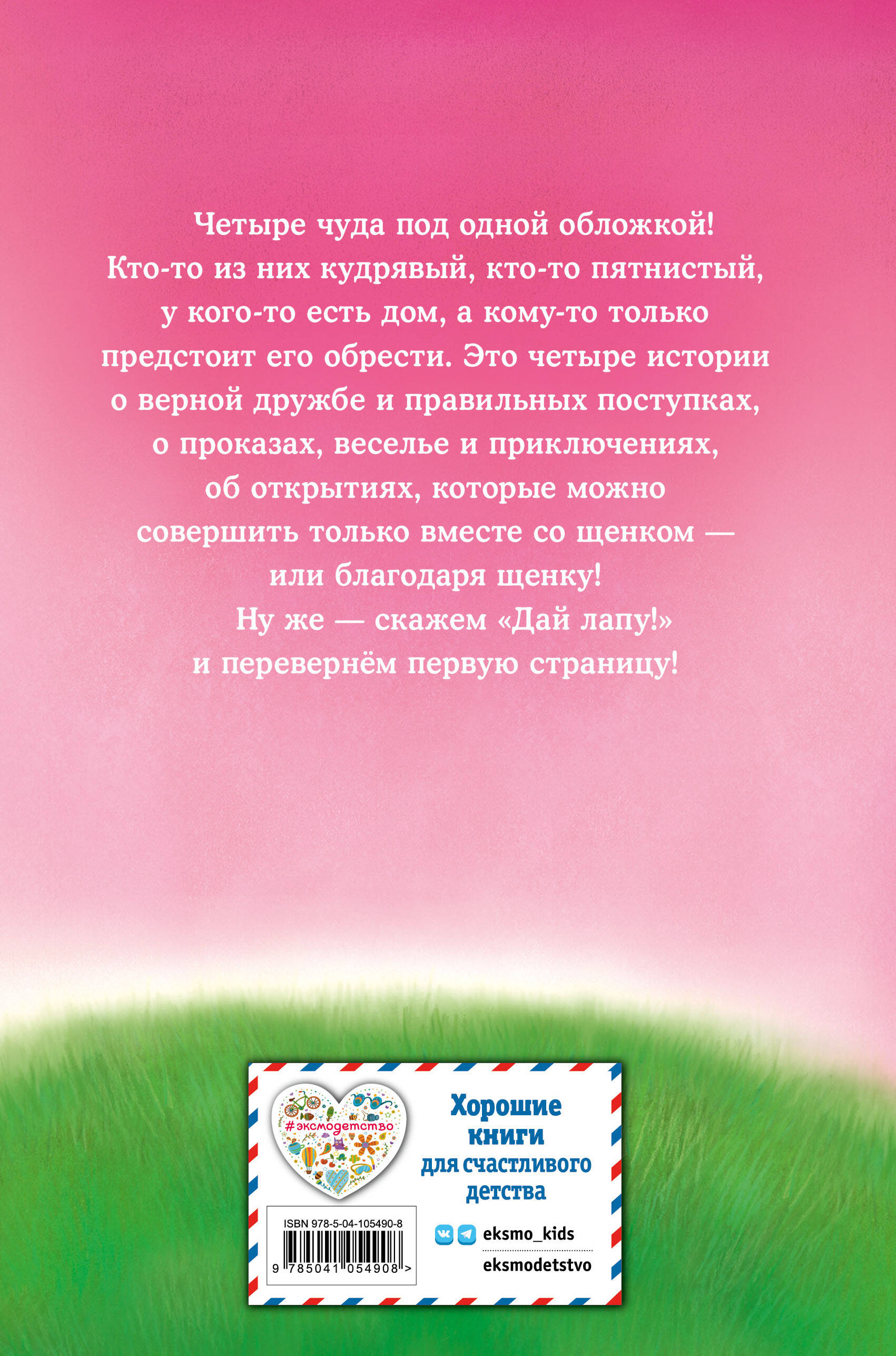 Четыре трогательные истории для любителей щенков! Здесь найдутся собаки на всякий вкус - и большие, и маленькие, и гладкошёрстные, и курчавые, но неизменно очаровательные! Каждая история бережно учит ответственности, доброте и заботливости по отношению к своей семье и животным! Крупный шрифт, прелестные чёрно-белые иллюстрации, увлекательные истории понравятся как тем, кто уже читает сам, так и тем, у кого навыки чтения ещё не закрепились. Идеальные книги для родителей, которые хотят, чтобы дети втянулись в чтение. В серию книг входят: «Мяу! Большая книга добрых историй», «Отзывчивое сердце. Большая книга добрых историй», «Дай лапу! Большая книга добрых историй».| Издательство | ООО "Издательство "Эксмо" |