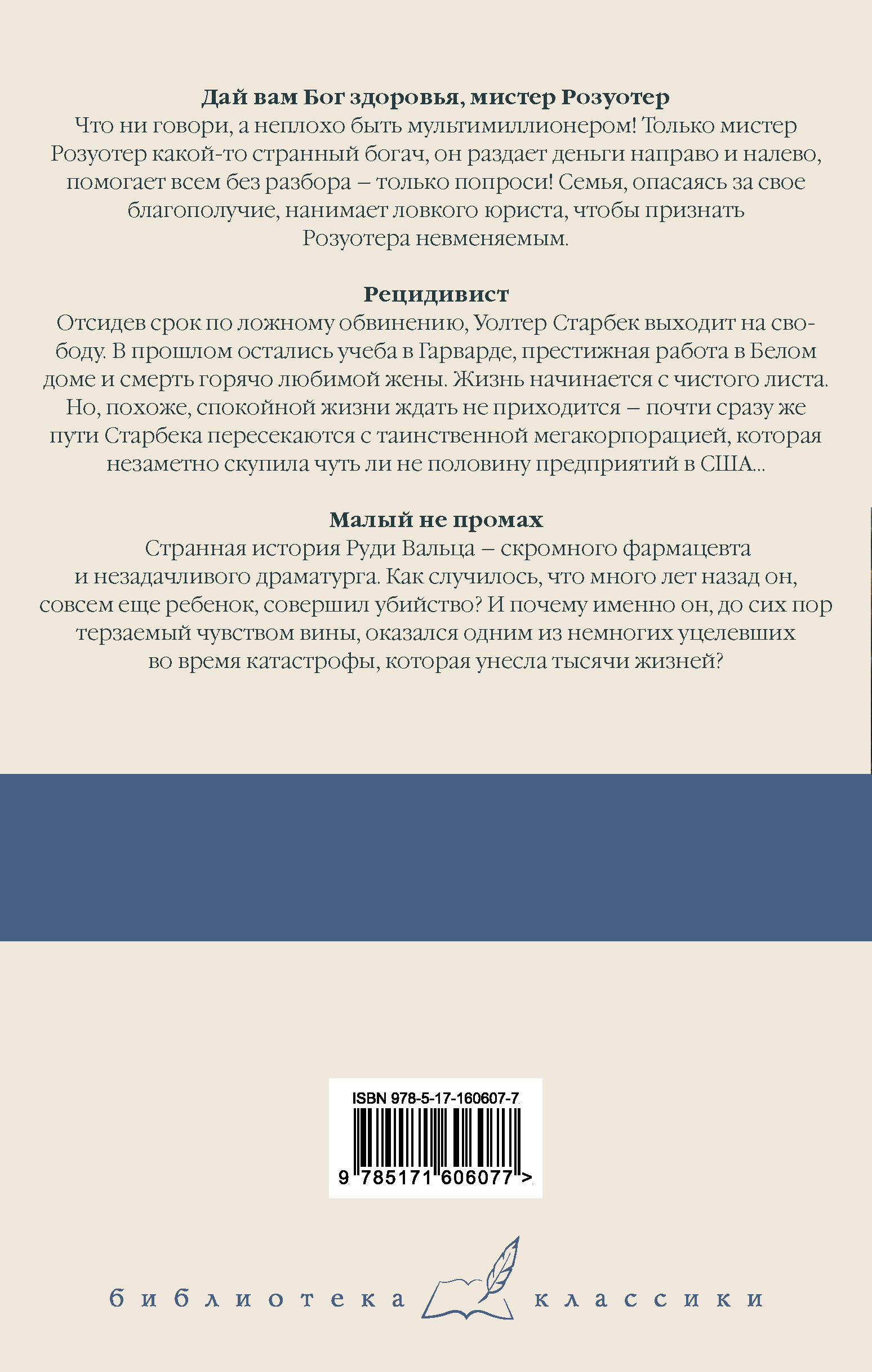 Аннотация: Дай вам Бог здоровья, мистер Розуотер. Рецидивист. Малый не промах