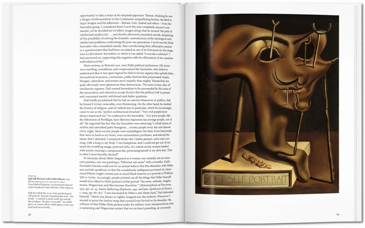 Dalí frequently described his paintings as "hand-painted dream photographs." Their tantalizing tension and interest resides in the precise rendering of bizarre elements and incongruous arrangements. As Dalí himself explained, he painted with "the most imperialist fury of precision," but only "to systematize confusion and thus to help discredit completely the world of reality."