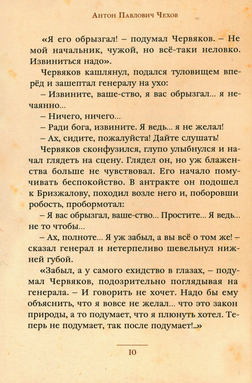 В своих лаконичных рассказах Антон Павлович Чехов позволяет заглянуть в самые потаённые уголки даже самого закрытого сердца. Любая из девяти коротких историй, представленных в этом сборнике, может подарить часы размышлений о жизни и о судьбе, о своём характере и о поведении окружающих. Тоньше начнёт ощущаться стремительная окружающая действительность. Захочется стать лучше и сделать немного счастливее мрачных прохожих. Ведь психологизм произведений Чехова даёт нам шанс понять всю многогранность человеческого характера и всю хрупкость человеческих чувств. А прекрасные иллюстрации Анны Зайцевой только усилят впечатления от рассказов.| Издательство | ИД Мещерякова |
