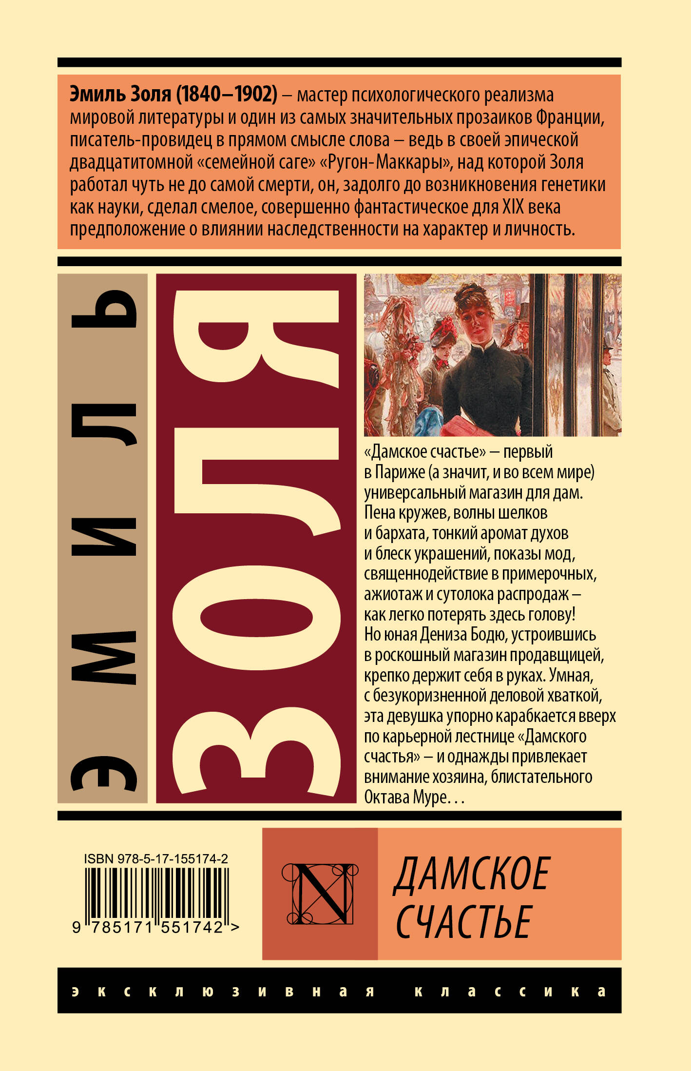 "Дамское счастье" - первый в Париже (а значит, и во всем мире) универсальный магазин для дам. Пена кружев, волны шелков и бархата, тонкий аромат духов и блеск украшений, показы мод, священнодействие в примерочных, ажиотаж и сутолока распродаж, - как легко потерять здесь голову! Но юная Дениза Бодю, устроившись в роскошный магазин продавщицей, крепко держит себя в руках. Умная, с безукоризненной деловой хваткой, эта девушка упорно карабкается вверх по карьерной лестнице "Дамского счастья", - и однажды привлекает внимание хозяина, блистательного Октава Муре…| Издательство | ИЗДАТЕЛЬСТВО "АСТ" |