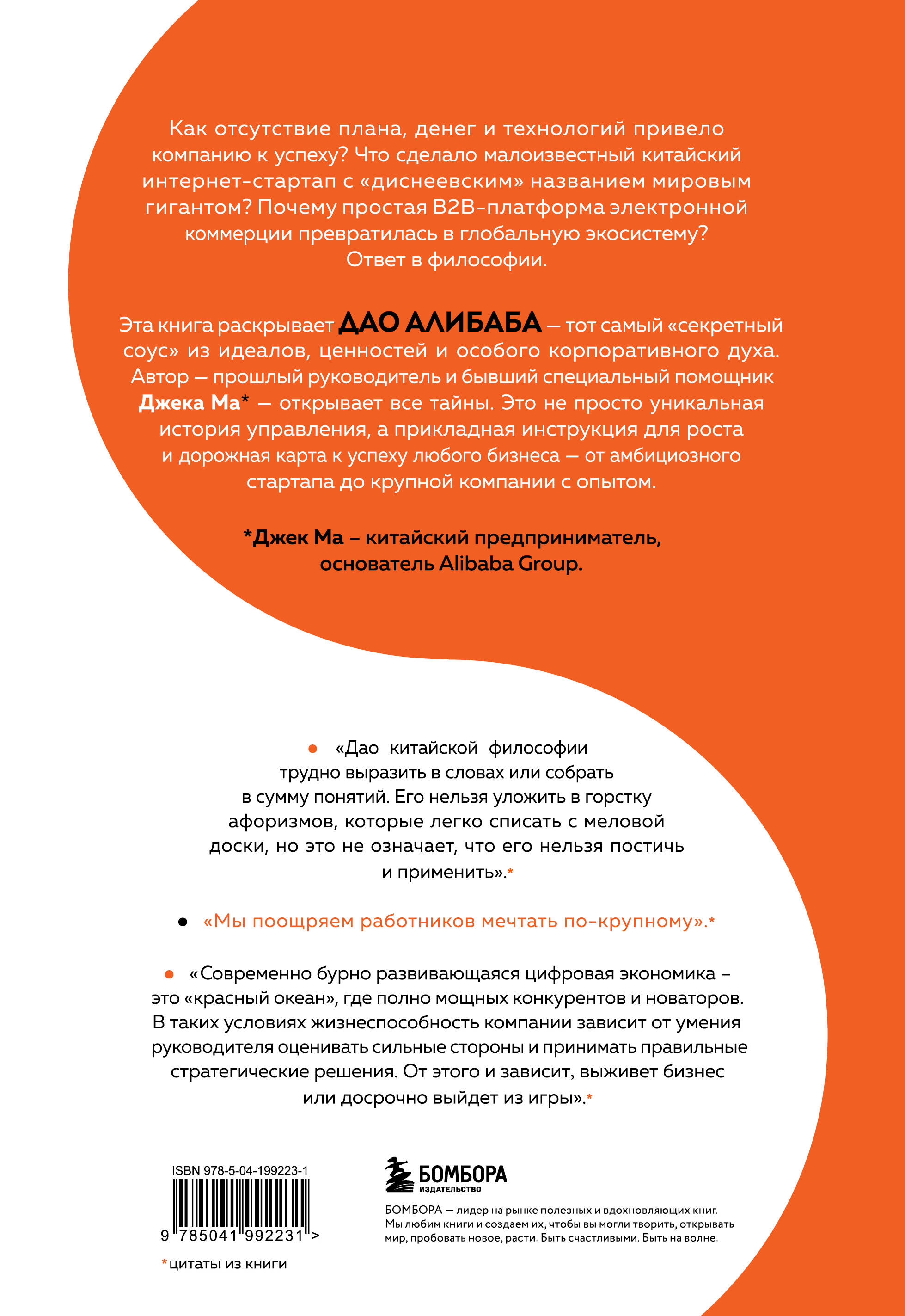 Как отсутствие плана, денег и технологий привели Alibaba к успеху? Что сделало малоизвестный китайский интернет-стартап с «диснеевским» названием мировым гигантом? Почему простая B2B-платформа электронной коммерции превратилась в глобальную экосистему? Ответ в философии. Эта книга раскрывает Дао компании - тот самый «секретный соус» из идеалов, ценностей и особого корпоративного духа. Автор - прошлый руководитель и бывший специальный помощник Джека Ма* - открывает все тайны. Это не просто уникальная история управления, а прикладная инструкция для роста и дорожная карта к успеху любой компании - от амбициозного стартапа до крупного бизнеса с опытом. *Джек Ма - китайский предприниматель, основатель Alibaba Group.| Издательство | ООО "Издательство "Эксмо" |