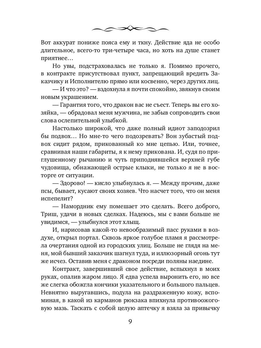 Заплатили драконом? Жди беды! Я согласилась выкрасть артефакт, чтобы обеспечить себе достойную аферистскую пенсию в молодом возрасте. Я видела цель, шла в ее направлении и. где-то определенно промахнулась! Иначе почему оказалась магически связанной с самым настоящим драконом? Идеалистом и законопослушным занудой, мешающим мне работать! Его нельзя обменять, подарить или случайно потерять. Я пробовала. Но дареному дракону в зубы не смотрят - их всё равно не продашь, а вот чешую. И не надо на меня рычать, я пошутила! Наверное. В наличии есть: - Одна аферистка, в далеком прошлом аниматор; - Один дракон, в недалеком прошлом принц; - Одна магическая цепь, соединяющая этих двоих; - И одна украденная реликвия… Что может пойти не так? =)