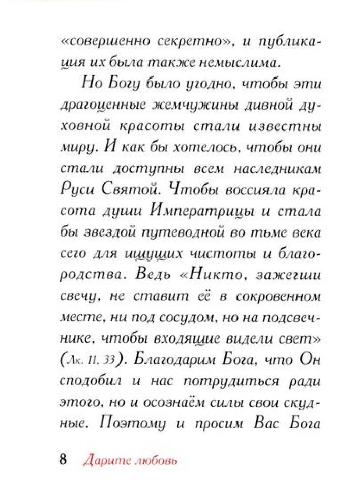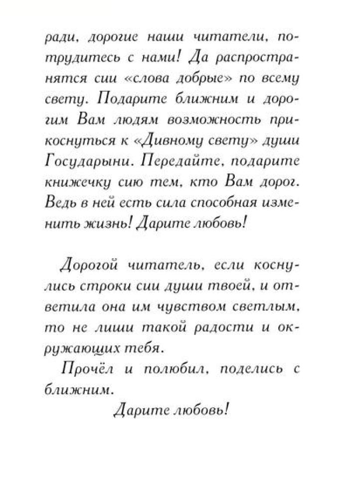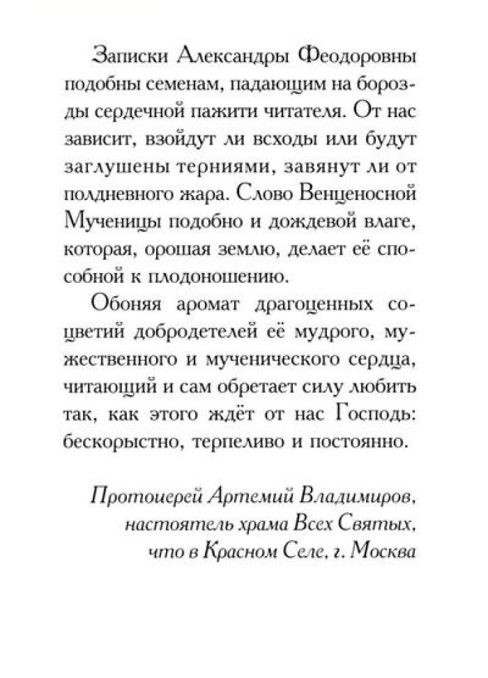 Эта книга - собранные вместе три полюбившиеся читателям брошюрки «О браке и семейной жизни», «Слова добрые» и «Сад сердца», выбранные из собрания дневников и писем Александры Феодоровны Романовой - «Дивный свет».| Издательство | Прав.изд."Апостол веры" |