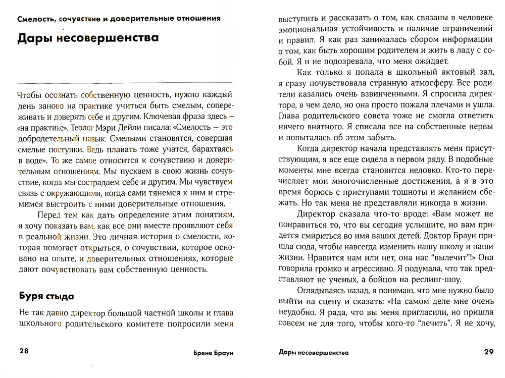 Мы все стыдимся своих недостатков. Стараемся вести себя и выглядеть так, чтобы окружающие не заподозрили нас в уязвимости, в том, что на самом деле мы далеко не так хороши, какими стараемся казаться. Современный человек слишком часто испытывает чувство стыда, и автор книги, знаменитый американский психолог Брене Браун, именно стыд называет эпидемией нашей культуры. Посвятив многие годы изучению историй самых разных людей, она приходит к выводу, что только приняв свои несовершенства, полюбив недостатки и позволив себе быть такими, какие есть, мы сможем жить в полную силу, в гармонии с собой и с миром. Брене Браун предлагает непростой, но неожиданный и смелый путь самоисцеления. Результаты исследований и личный опыт автора легли в основу одной из самых искренних книг по популярной психологии.
