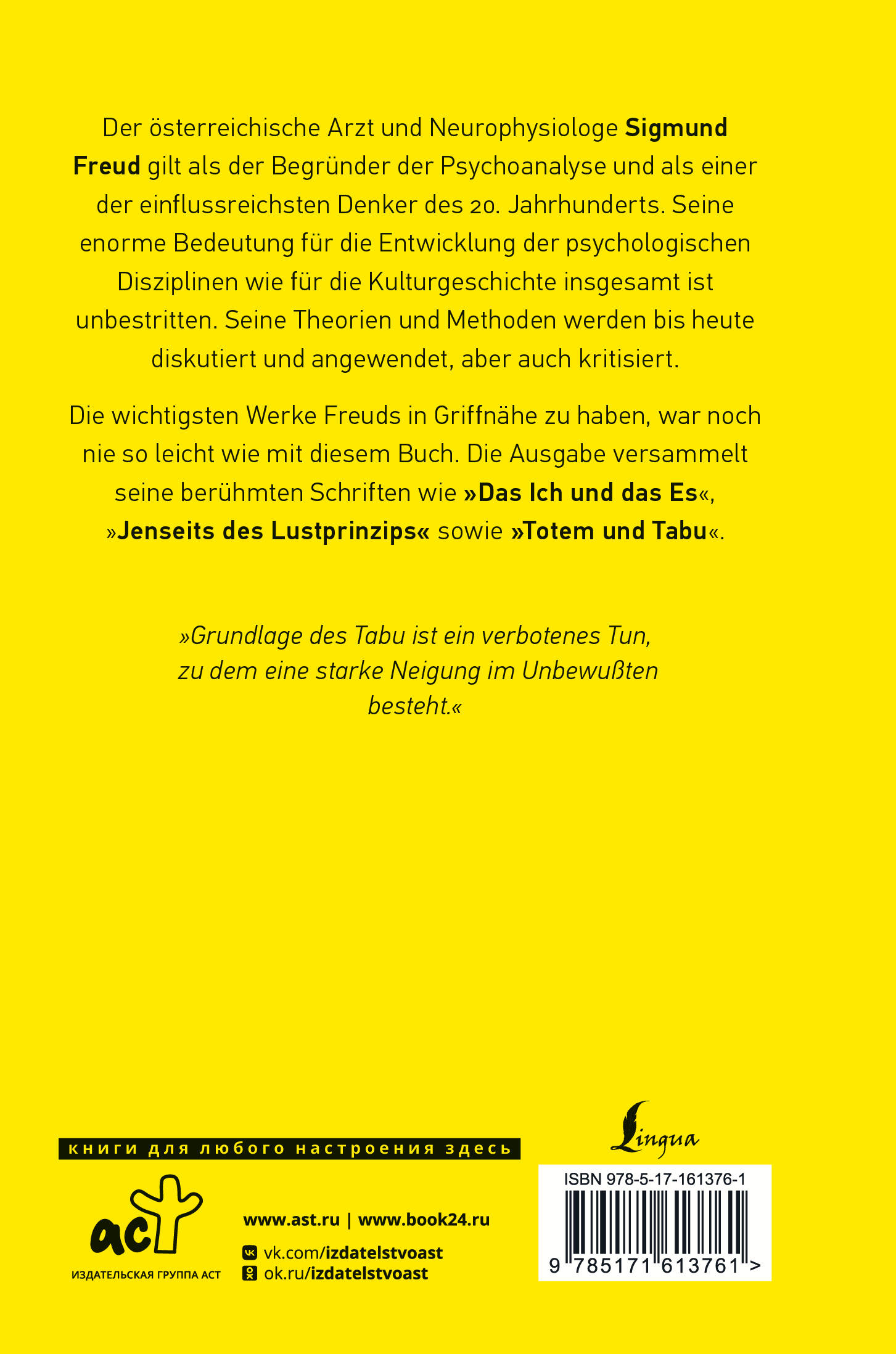 Издание на немецком языке. Зигмунд Фрейд - выдающийся австрийский психолог и психиатр, основатель психоанализа, один из самых влиятельных мыслителей XX века. Его работы сформировали основы современной психологии и внесли значительный вклад в понимание человеческого поведения и психических расстройств. В сборник вошли самые важные и увлекательные работы Фрейда - "Тотем и Табу", "По ту сторону принципа удовольствия", "Я и Оно". В этих произведениях автор затрагивает наиболее спорные и значимые темы психоанализа - связь древних культур с морально-этическими нормами современного общества, психологию сексуальности и глубинные механизмы взаимодействия сознательного и бессознательного. Книга издана в неадаптированной версии. Познайте свое внутреннее "я" и насладитесь духовным миром Фрейда в оригинале!| Издательство | Издательство "АСТ" |