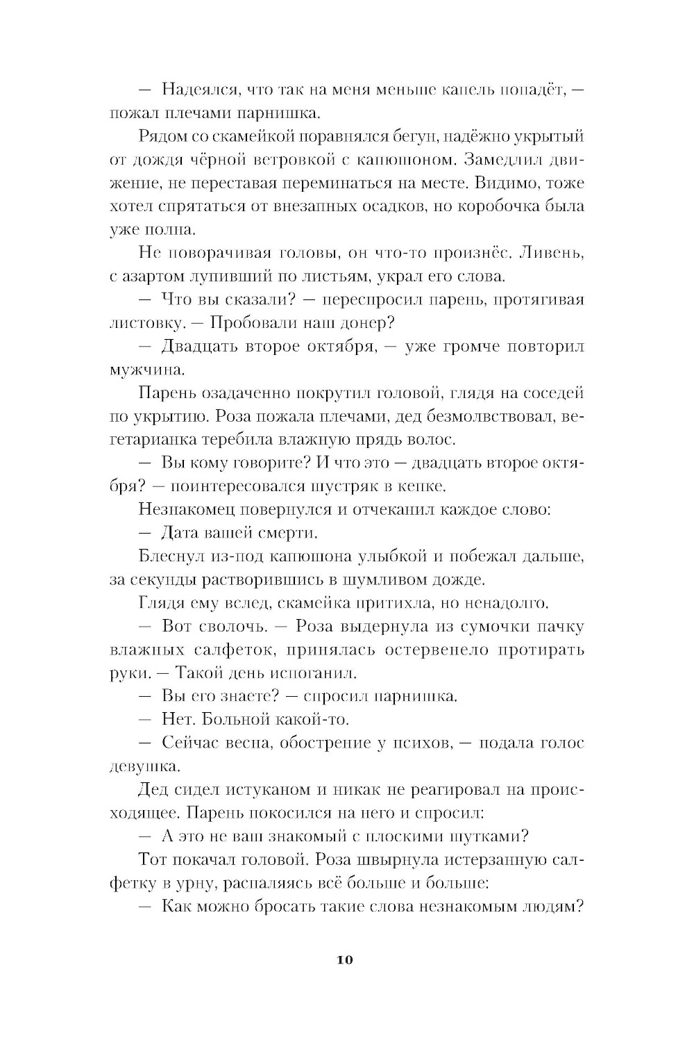 Как изменилась бы твоя жизнь, если бы ты знал дату своей смерти? Четверо алматинцев спасаются от дождя на одной скамейке. Они бы переждали непогоду и разошлись, чтобы больше никогда не встретиться в огромном городе, но пробегающий мимо незнакомец сообщает им дату их смерти - 22 октября. Старик, женщина, девушка и парень. У каждого своя жизнь, свои секреты, свои страхи. Каждый по-своему одинок. Но теперь у них есть кое-что общее.