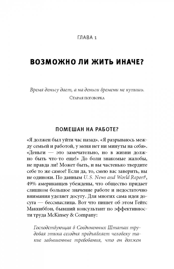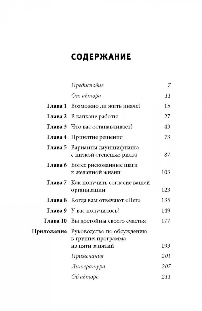 Джон Дрейк, "гуру дауншифтинга", предлагает доступные сценарии альтернативного образа жизни для любого трудоголика. Решившись изменить стиль своей жизни, вместе с автором вы пройдете все этапы нового пути - от принятия сознательного решения до планирования "выхода" и реализации определенного сценария новой жизни, от оценки собственной психологической готовности до минимизации воздействия перемен в вашей жизни на благосостояние близких и личное финансовое положение. Реальные истории из жизни людей, отказавшихся от карьеры и погони за "длинным рублем", помогут вам предпринять решительные шаги и изменить свою жизнь, сделав ее более гармоничной и радостной.