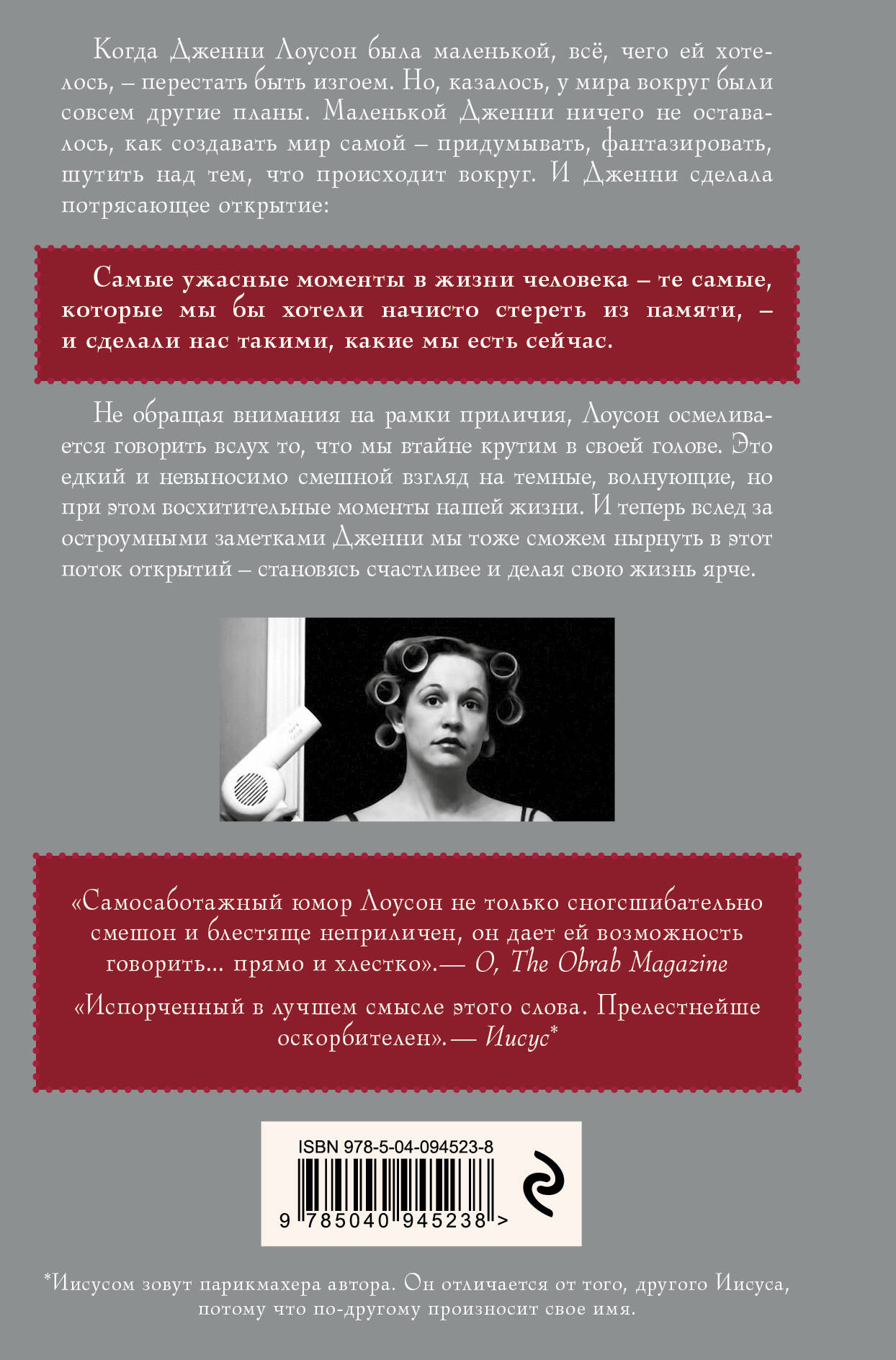 О книге: «Не бойся быть собой» - главная мысль этой книги, которую доводит до нас автор. На примере рассказа о своем непростом, но увлекательном детстве она учит нас тому, что не стоит опасаться глупых или даже пугающих ситуаций в своей жизни. Ведь именно они сделали нас такими, какие мы есть сейчас, - со всеми нашими особенностями и неповторимым характером. Об авторе: Дженнифер Лоусон - автор бестселлеров «Безумно счастливые» и хозяйка двух котов, известная своим необычным чувством юмора и умением доводить любую, даже самую печальную ситуацию до уморительного абсурда. Для кого эта книга: Эта книга для тех, кто не понаслышке знает о том, что такое - быть изгоем. Для тех, кто устал бесконечно сравнивать себя с другими. И, конечно, для тех, кто хочет научиться видеть радость в каждом новом дне.| Издательство | ООО "Издательство "Эксмо" |