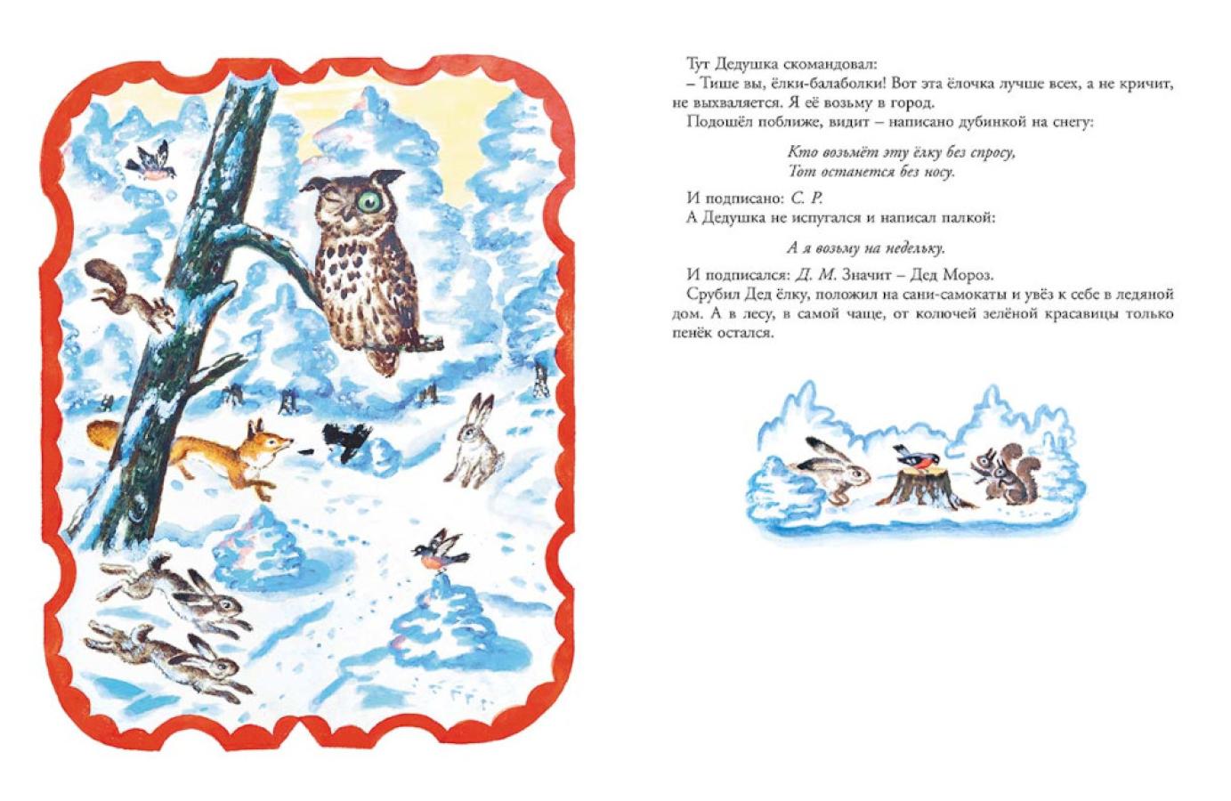 Книга о предновогодних хлопотах Деда Мороза создана писателем Яковом Тайцем и художником Алисой Порет в 1958 году. Деду Морозу помогают тётушка Зима, Снегурочка, смешной мальчишка Егор-Наперекор и малыш Новый год. История почти детективная: тут и санки-самокаты, и непростая история поисков красавицы-ёлочки, и погоня, и злодей Соловей-разбойник, который строит козни, но получает за это заслуженное наказание, и волшебное преображение Деда Мороза в Ивана-царевича (и обратно) с помощью котлов с молодой и старой водой, и развесёлый праздник во дворце. Книга написана легко, весело, фантазийно, без лубочной елейности. Автор удачно совместил сказочные народные рифмы («лисы - хвосты пушисты») с современным, почти детективным колоритом (Соловей-разбойник хочет продать самую красивую елочку за 100 рублей). Завершает сказку исключительно гуманный поступок Деда Мороза, который, как выясняется, еще в далёком 1958 году был озабочен вопросами сохранности лесов. Он возвращает ёлочку на старое место, примораживает её к пеньку, и ёлочка продолжает расти как ни в чём не бывало, вспоминая время от времени о празднике и своём роскошном новогоднем уборе.| Издательство | Мелик-Пашаев |