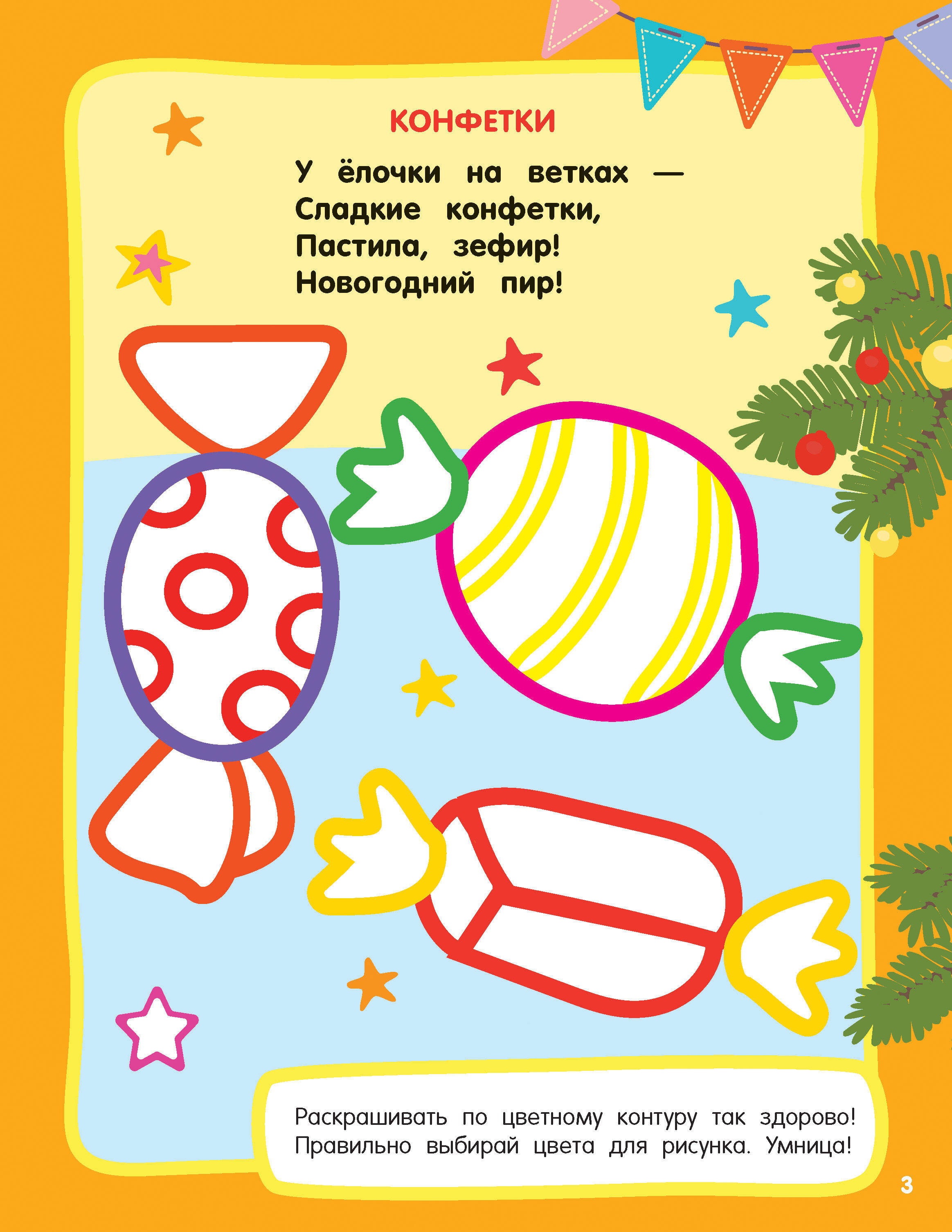 В книгах новой развивающей серии «Раскраски на радость малышу» - забавные картинки с широким цветным контуром + развивающие задания + весёлые стихи об игрушках. Раскрашивать картинки с цветным широким контуром интересно и очень полезно - такие занятия расширяют кругозор и словарный запас, формируют графические навыки, развивают мышление, память, внимание, наблюдательность и творческие способности. Помогите ребёнку раскрасить нарядную ёлочку, Дедушку Мороза или сладкие подарки цветными карандашами, маркерами и мелками, красками - подарите малышу счастливые минуты совместного творчества. И конечно - новогоднее настроение! Малыш постарается всё сделать аккуратно - и у него обязательно получатся замечательные картинки, которыми можно будет украсить детскую комнату к празднику. Играйте, раскрашивайте, разучивайте стихи вместе с малышом! Проводите время всей семьёй, и пусть все ваши мечты и желания сбудутся в Новом году!| Издательство | Издательство "АСТ" |