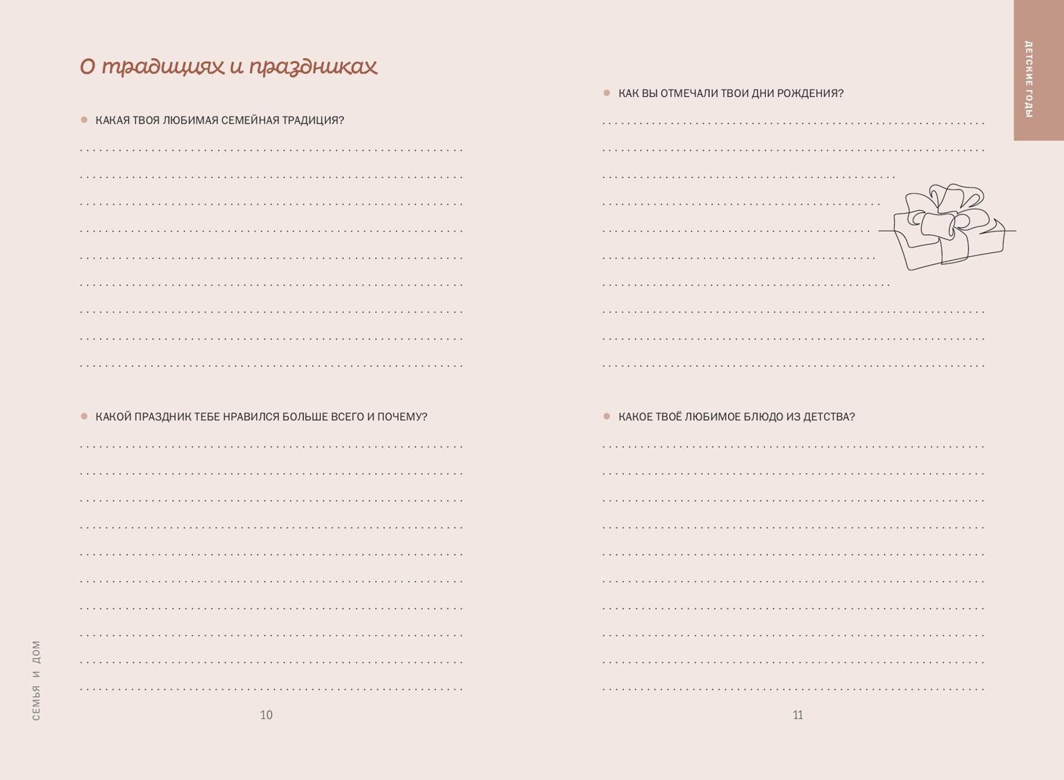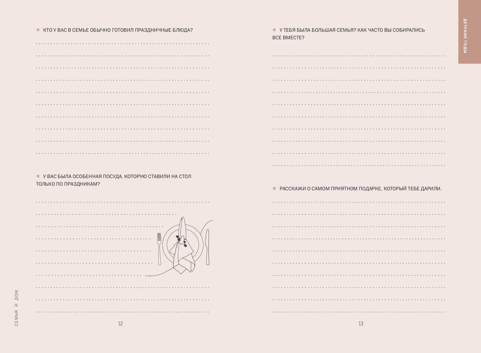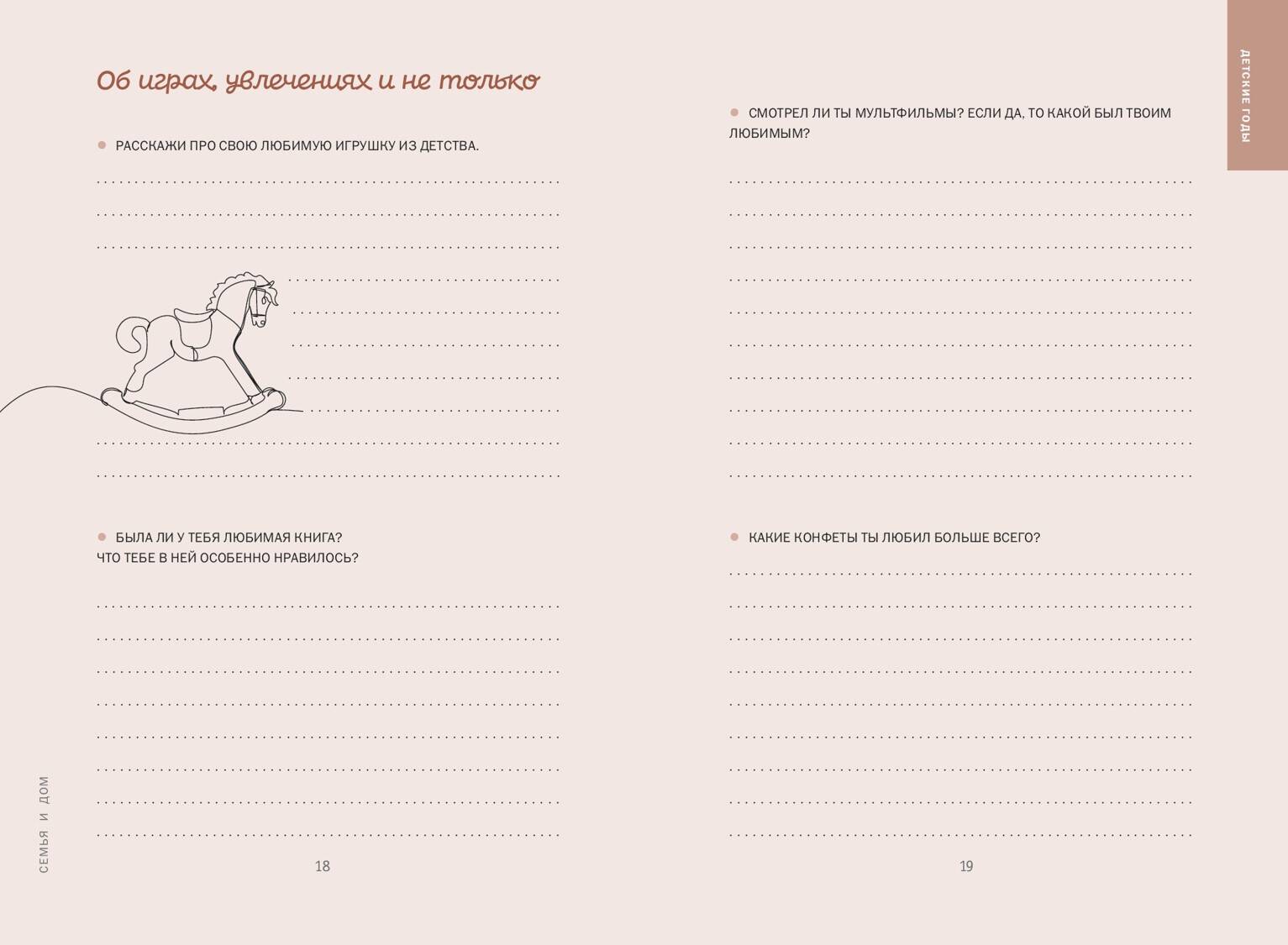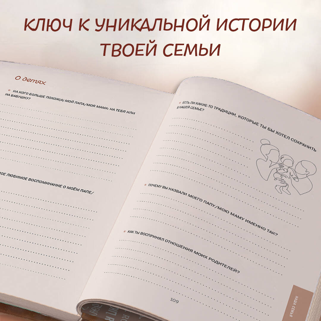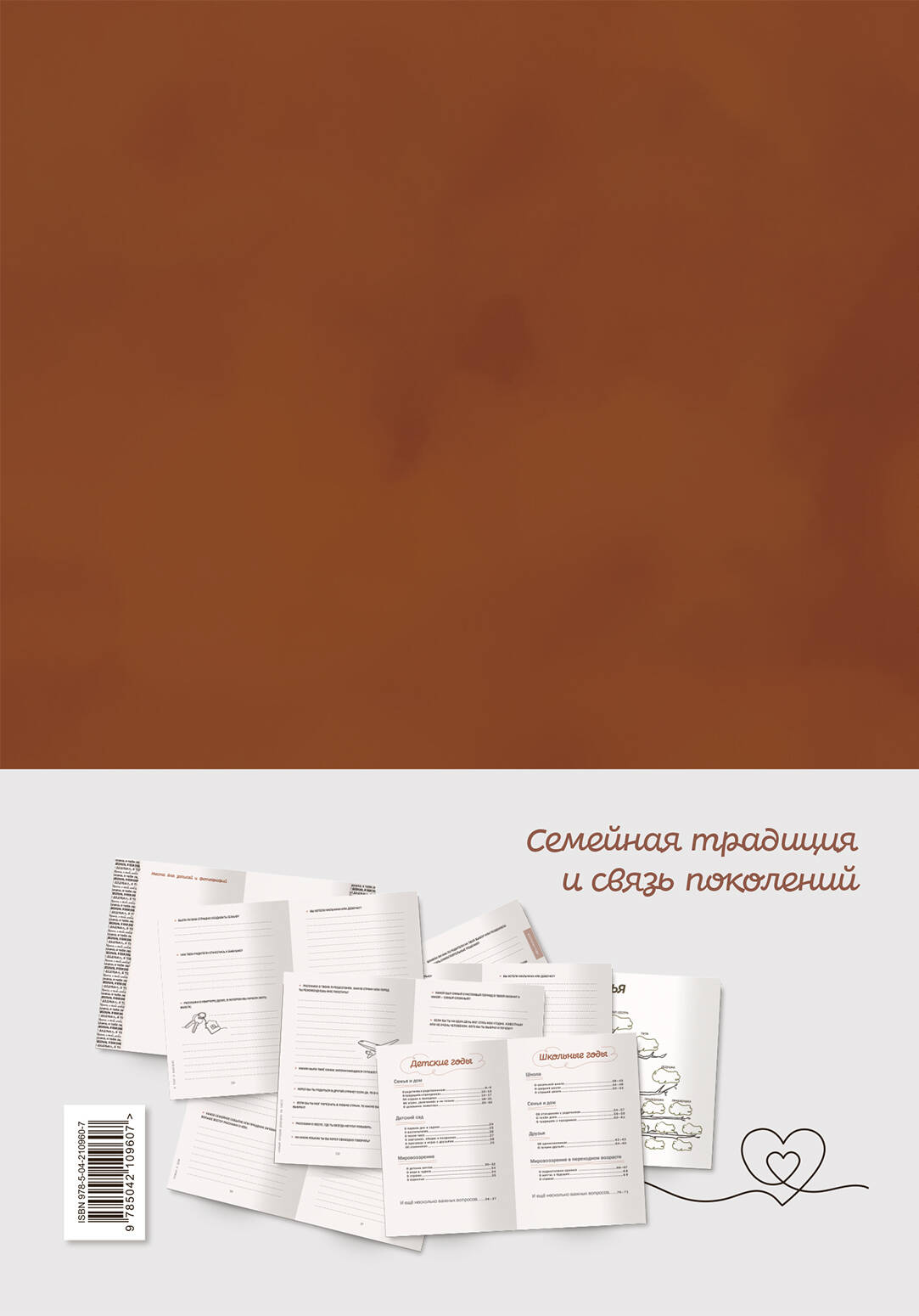 КНИГА ДЛЯ УЮТНЫХ СЕМЕЙНЫХ ВСТРЕЧ - КЛЮЧ К УНИКАЛЬНОЙ ИСТОРИИ ТВОЕЙ СЕМЬИ Наполните сердце вашего дедушки радостью, сказав: «Я люблю тебя! Расскажи мне, пожалуйста, о себе!» Узнайте лучше своего дедушку: какой он был в детстве, о чем мечтал, чему научился за свою жизнь и как стал таким, какой есть. Сохраните важные воспоминания и даже спустя много лет вы сможете возвращаться к книге, перечитывать и дополнять, а однажды прочитать своим детям и внукам, чтобы и они тоже узнали, каким необычным и интересным человеком был их прадедушка и прапрадедушка. • Как в его семье отмечали праздники, и какие традиции ему нравились больше всего? • В какие игры он играл с родителями? • Какое лето стало его самым любимым? • Как проходили тихие часы в его детском садике, и был ли ваш дедушка озорником? • Нравились ли ему полдники и обеды? • О чем он мечтал и как представлял себе мир взрослых, когда был ребенком? • Как ваш дедушка узнал страшную тайну о Деде Морозе? • Какой была его школа? Какие уроки были самыми любимыми? • За что он получил свою самую позорную двойку? • Как звали дедушкиных лучших друзей, и подшучивали ли они над учителями? • Как выглядела комната вашего дедушки? • Был ли он бунтарем в переходном возрасте? • Как проходили его выпускные экзамены? • Какой была его первая работа, и были ли у него хорошие отношения с руководством? • Как дедушка познакомился с вашей бабушкой и как сделал ей предложение? • Что он почувствовал, когда впервые взял вас на руки? Более 310 тем для искренних и душевных бесед с дедушкой! Эта книга - не просто семейный альбом или сборник вопросов. Эта книга - ваше признание в любви своему дедушке. Заполните ее вместе с ним или запишите ответы самостоятельно с его слов и создайте семейное древо. Если хотите, можете задавать вопросы последовательно, ведь все они расположены хронологически - от детства к нынешнему возрасту. Но на самом деле никаких правил нет! Можете начать диалог с любого места и дальше ориентироваться на ход беседы, переходя от раздела к разделу в зависимости от приходящих воспоминаний. Пусть эта новая традиция станет шагом к узнаванию уникальной истории вашей семьи. В книге вы найдете разделы: 1. Детские годы: семья и дом, детский сад, мировоззрение 2. Школьные годы: школа, семья и дом, друзья, мировоззрение в переходном возрасте 3. Студенческие годы: учёба, отношения, мировоззрение 4. Взрослая жизнь: работа, личная жизнь, мировоззрение 5. Наша семья Кроме того, в издании есть места для фото и заметок. Книга «Дедушка, я тебя люблю!» - это не только идеальный подарок для близкого человека на Новый год, день рождения, 23 февраля или день отца, но и ваш проводник в мир психологии и саморазвития, ведь узнавая свои корни, мы узнаем и настоящих себя, а значит, вы сможете разобраться и в вопросах к себе, которые у всех нас возникают в течение жизни. Издание подойдет и тем, кто ищет семейный фотоальбом необычного формата, и понравится вам, если вы обращали внимание на бестселлеры «С тобой я дома», «К себе нежно». Издание станет настоящим украшением книжной полки: у него отличное подарочное оформление, твердая обложка с приятным на ощупь покрытием софт тач, плотные страницы, цветная шелковая лента-закладка, съемный полусупер. Такие же книги мы сделали для мамы, папы и бабушки - «Мама, я тебя люблю! Моя книга о тебе», «Папа, я тебя люб