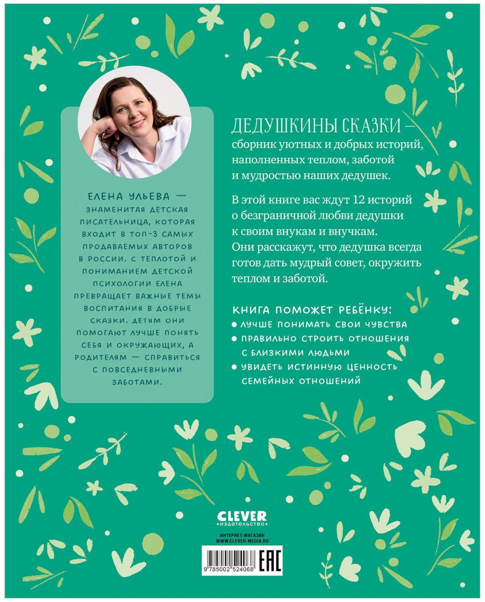 «Дедушкины сказки для чтения перед сном» - сборник сказок, который поможет ребенку лучше понимать свои чувства, правильно строить отношения с близкими людьми и видеть истинную ценность семейных отношений. Уютные истории с яркими картинками прекрасно подойдут для чтения на ночь. В этой книге вас ждут 12 сказок о безграничной любви дедушки к своим внукам и внучкам. Они расскажут, что дедушка всегда готов дать мудрый совет, окружить теплом и заботой. Детские книги Елены Ульевой - это полезные и добрые сказки для малышей, которые помогут родителям в воспитании и обучении ребенка. Эти детские сказки уже стали любимыми у многих семей. Если вы ищете подарок ребенку 2 лет или сказки для детей 3 лет, выбирайте Clever книги Елены Ульевой. Книжка для малышей «Дедушкины сказки для чтения перед сном» - отличный выбор, если вам нужны поучительные книжки для детей, добрые и полезные книги для малышей и развивающие сказки.| Издательство | Клевер-Медиа-Групп |
