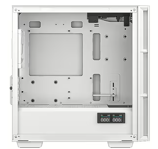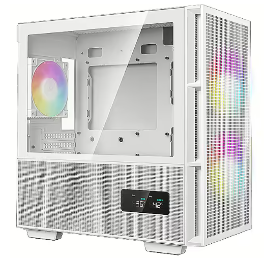 Компактный mid-tower корпус формата Micro-ATX/Mini-ITX с акцентом на высокий воздушный поток и современный дизайн. Оснащён гибридной боковой панелью из сетки и закалённого стекла, а также цифровым экраном для отображения статуса системы.