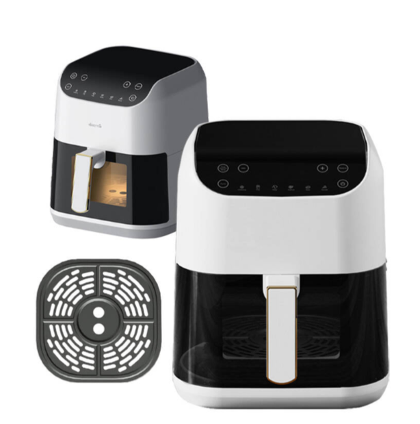 Аэрофритюрница Deerma DEM-KZ130WDeerma DEM-KZ130W - это аэрофритюрница большой емкостью 5,5 л, в которой можно приготовить даже целую курицу. Устройство имеет 6 предустановленных программ, каждая из которых имеет настройки температуры и времени выпечки, подходящие для определенного типа блюда.