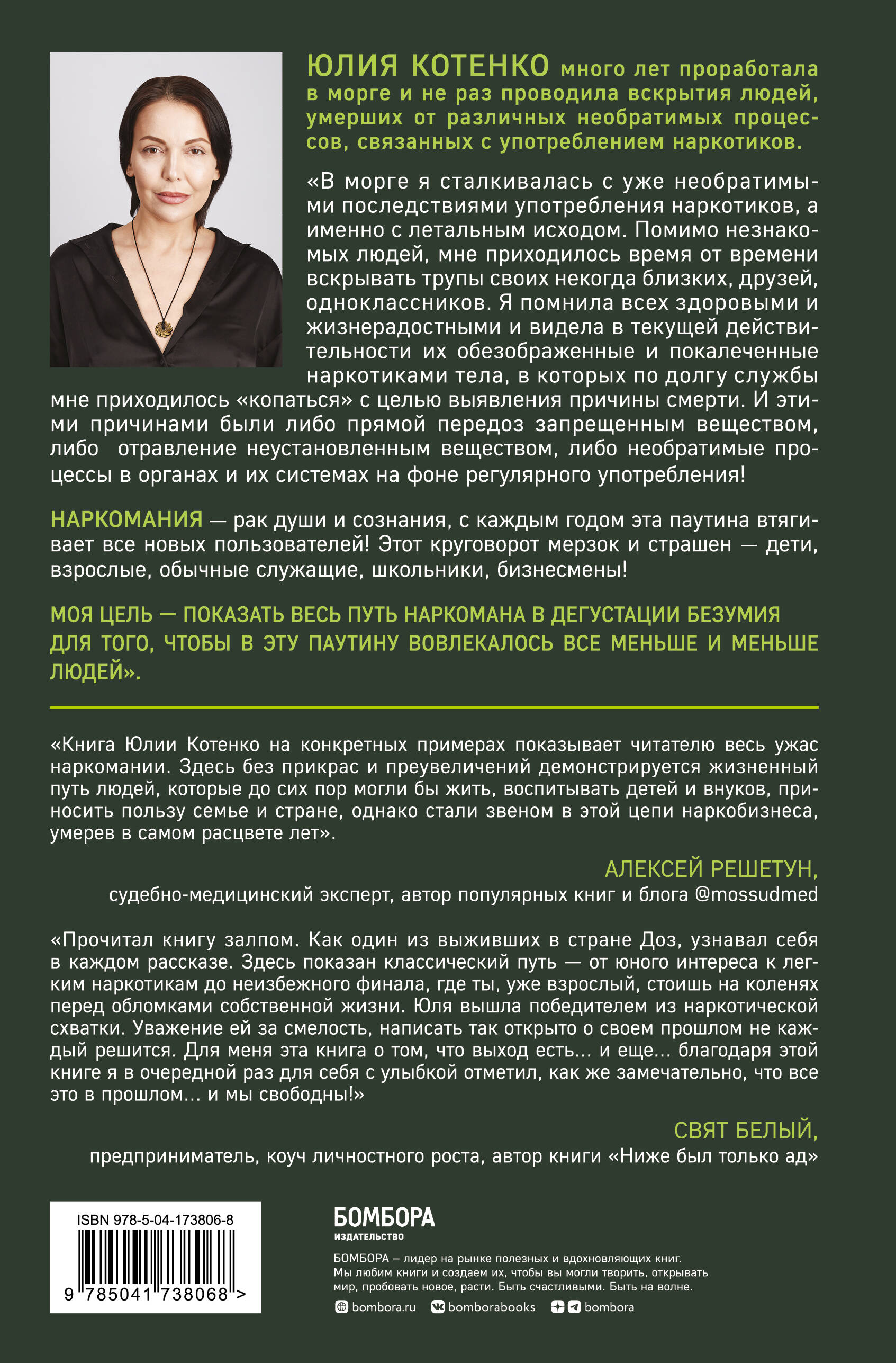 Прилежная школьница, постепенно скатывающаяся в зависимость и скрывающая даже от родителей, что уже давно пристрастилась к наркотикам. Молодой человек, для которого десятидневный кокаиновый марафон окончился инсультом и спасенный лишь благодаря помощи врачей. Девушка, чье зрение навсегда и необратимо изменилось после одной веселой вечеринки в компании друзей и веществ. Компания молодых и творческих людей, чьи поиски просветления и новых ощущений оборачиваются настоящим кошмаром. «Дегустатор безумия» - реальные истории людей, у которых получилось выжить в схватке с наркотиками и зависимостью, хотя никому из них и не удалось выйти из нее без серьезных потерь. В книге они честно рассказывают, почему решились попробовать опасные вещества, как наркотики разделили их жизнь на «до» и «после» и к каким страшным последствиям это привело. «Книга Юлии Котенко на конкретных примерах показывает читателю весь ужас наркомании. Здесь без прикрас и преувеличений демонстрируется жизненный путь людей, которые до сих пор могли бы жить, воспитывать детей и внуков, приносить пользу семье и стране, однако стали звеном в этой цепи наркобизнеса, умерев в самом расцвете лет. Книга будет интересна и полезна всем, независимо от возраста, рода занятий, пола и образования. Правда иногда бывает горькой, но смотреть на угрозу своему существованию нужно с широко открытыми глазами». - Алексей Решетун, судебно-медицинский эксперт, автор популярных книг и блога mossudmed «Прочитал книгу залпом. Как один из выживших в стране Доз - узнавал себя в каждом рассказе. Здесь показан классический путь, от юного интереса к легким наркотикам до неизбежного финала, где ты уже взрослый стоишь на коленях перед обломками собственной жизни. Юля вышла победителем из наркотической схватки. Уважение ей за смелость, написать так открыто о своём прошлом не каждый решится. Для меня эта книга о том, что выход есть… и еще… благодаря этой книге я в очередной раз для себя с улыбкой отметил, как же замечательно, что все это в прошлом… и мы свободны!» - Свят Белый, предприниматель, коуч личностного роста, автор книги «Ниже был только ад»| Издательство | ООО "Издательство "Эксмо" |