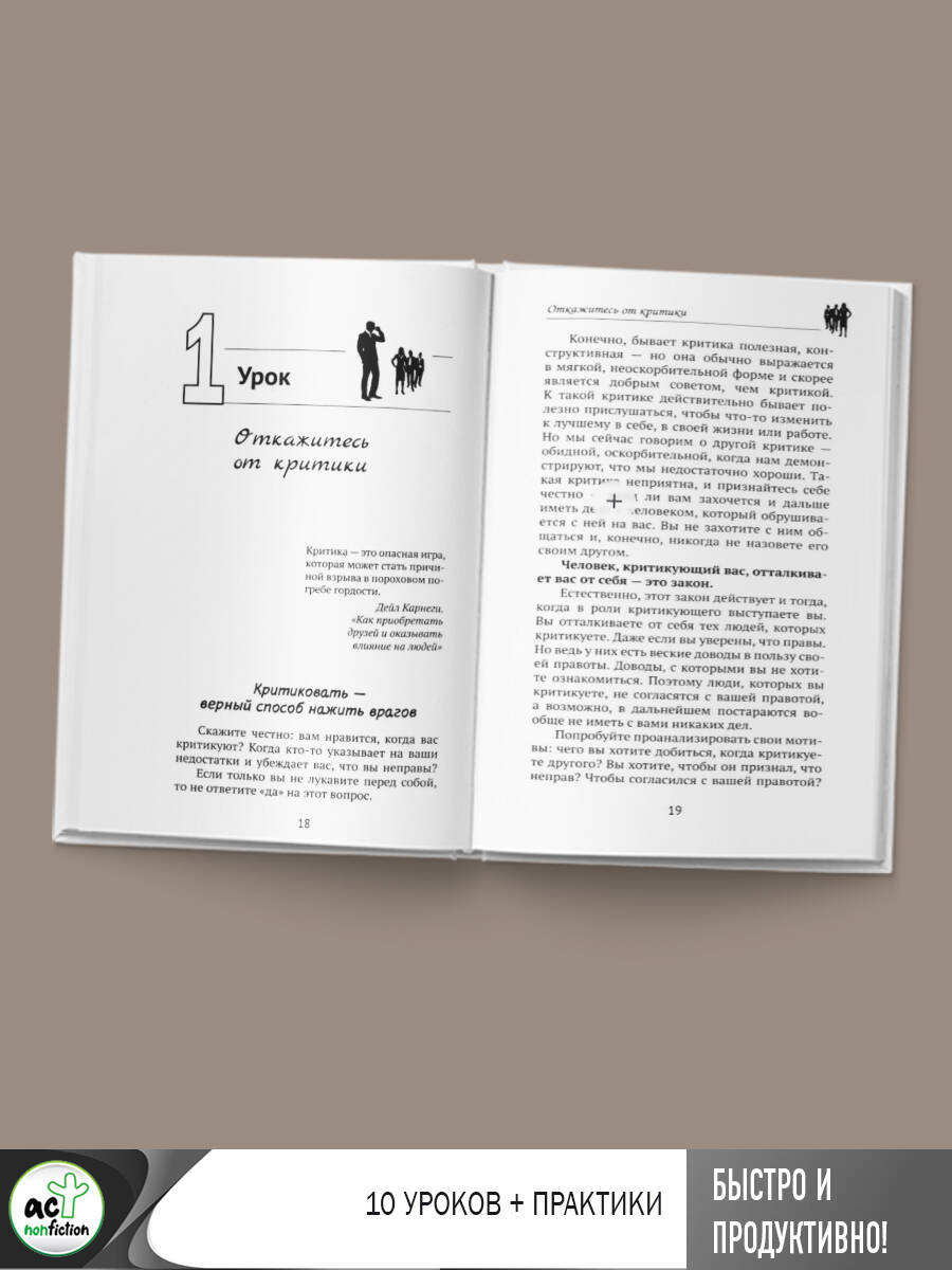 Без навыков успешного общения невозможно ни сделать карьеру, ни выстроить отношения с людьми. Умение общаться - это искусство, которым не все владеют, но тем не менее оно необходимо каждому вне зависимости от рода деятельности. Книги Дейла Карнеги - классика психологии, которую следует знать абсолютно всем, кто хочет иметь успех в общении! Уникальность этой книги в том, что она поможет освоить приемы общения Дейла Карнеги быстро, надежно и максимально эффективно, потому что они разложены "по полочкам" и сопровождаются практикой! Все приемы Карнеги изложены четко, сжато - всего в 10 уроках. Практические упражнения к каждому уроку помогут быстро освоить все советы мастера общения и научиться применять их в реальной жизни. Разобраны типичные трудности, которые могут возникнуть при освоении приемов, и указаны пути их преодоления. Эта книга-тренинг будет полезна всем, кто хочет научиться убеждать и достигать всех своих целей. Часть текстов, использованных в этой книге, издавалась в книгах "Весь Карнеги: шпаргалки, формулы, подсказки и упражнения" и "Карнеги. Все секреты общения в одной книге". Данное издание - расширенная дополненная версия этих книг. С помощью этой книги вы научитесь: · вести диалог с любым человеком; · находить компромисс в общении с кем угодно; · производить хорошее впечатление на собеседника; · выстраивать доверительные отношения с окружающими. Книга в твердой обложке.| Издательство | Издательство "АСТ" |