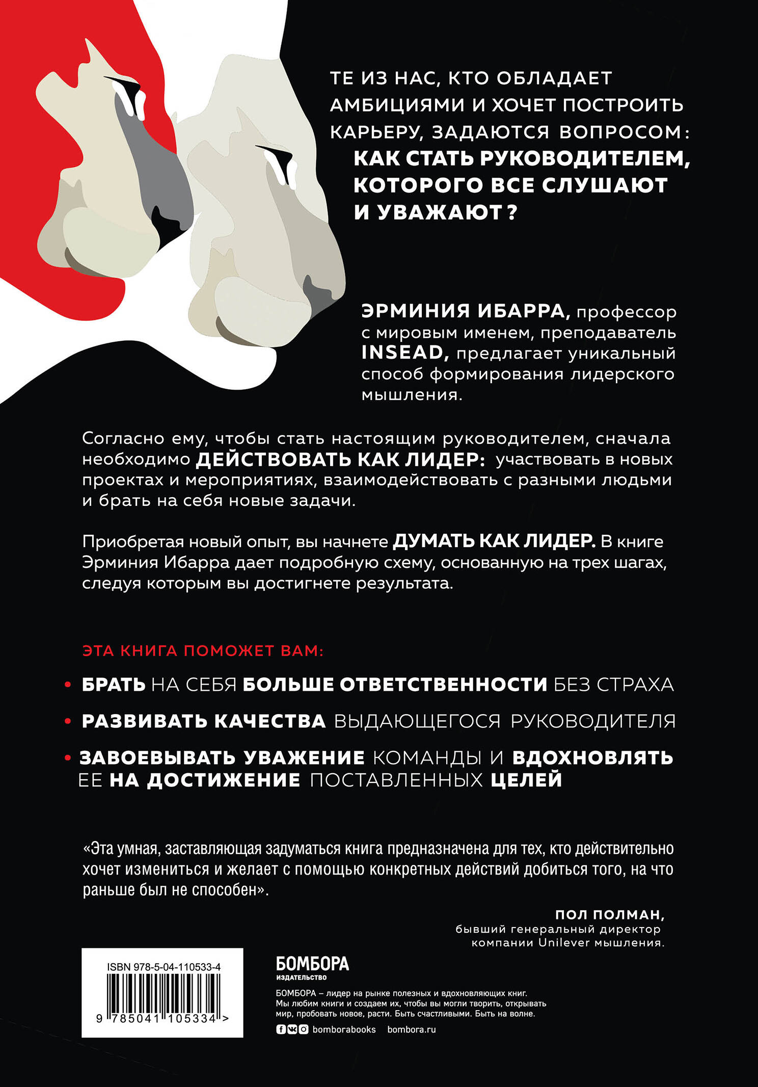 Как стать настоящим руководителем? Принято считать, что сначала нужно сформировать мышление лидера, потом, как следствие, меняется поведение. Что если этот порядок поменять местами? Автор книги "Действуй как лидер, думай как лидер" Эрминия Ибарра предлагает начинать с активных действий - брать на себя больше ответственности, общается с людьми, чьи взгляды не совпадают с вашими, участвовать в новых проектах. Все это неизменно приведет к изменению мышления. Следуя программе Ибарры, основанной на трех шагах, вы сможете стать лидером, которому доверяют, ради которого не боятся рисковать, которого любят и уважают.