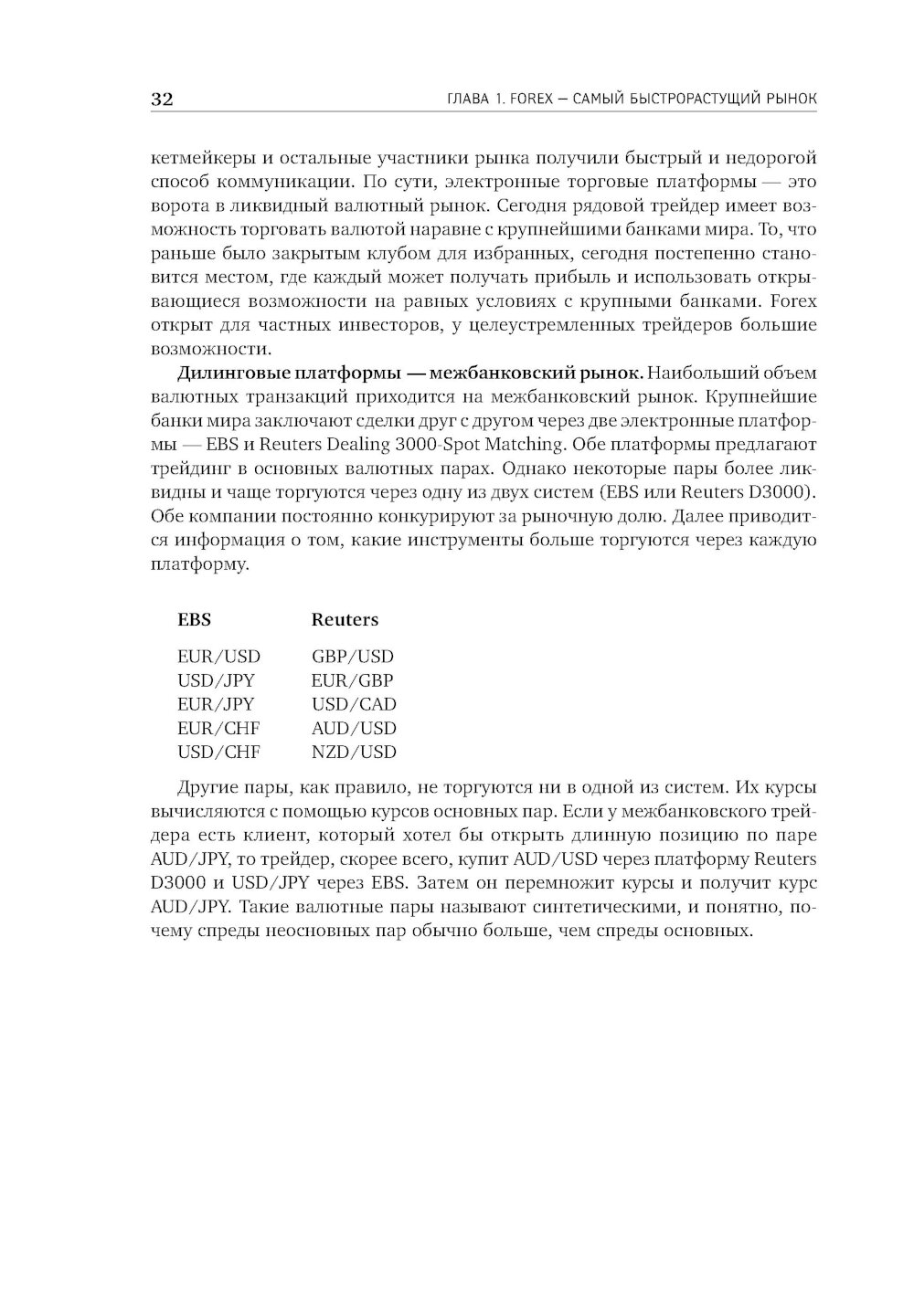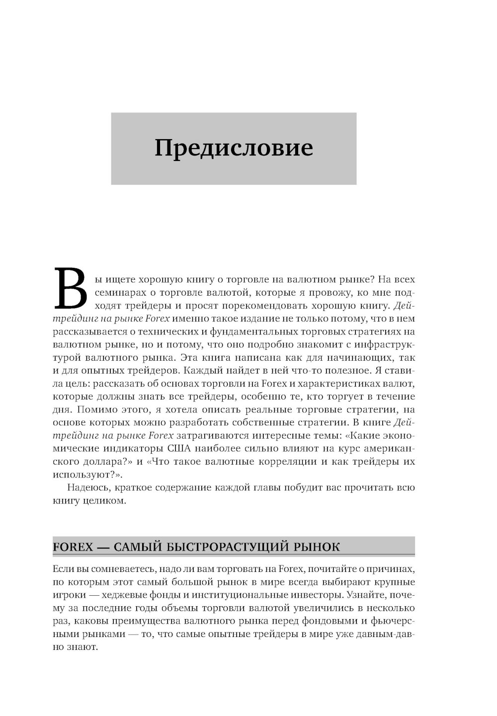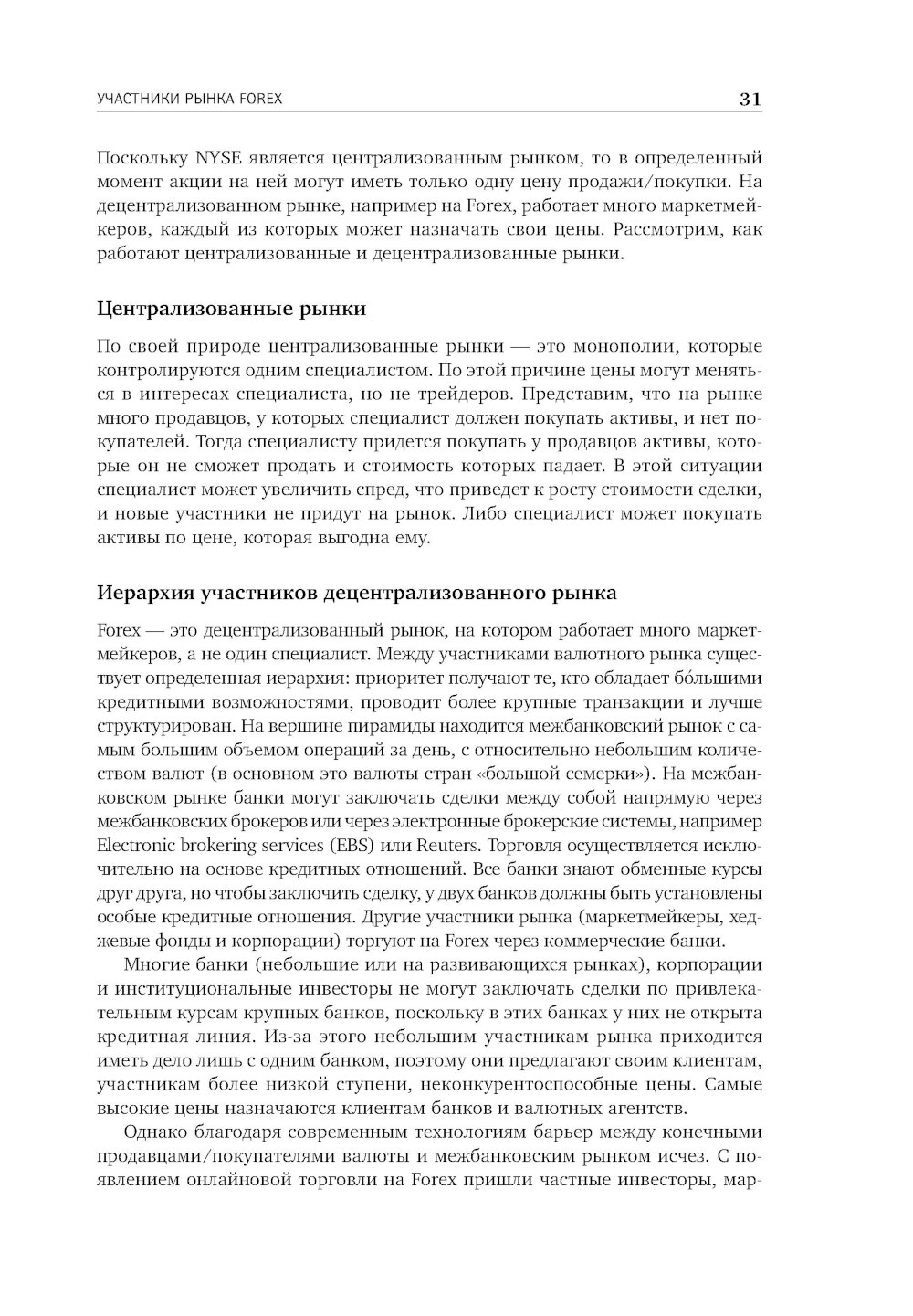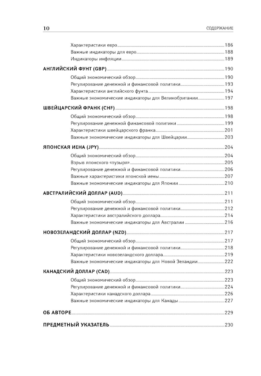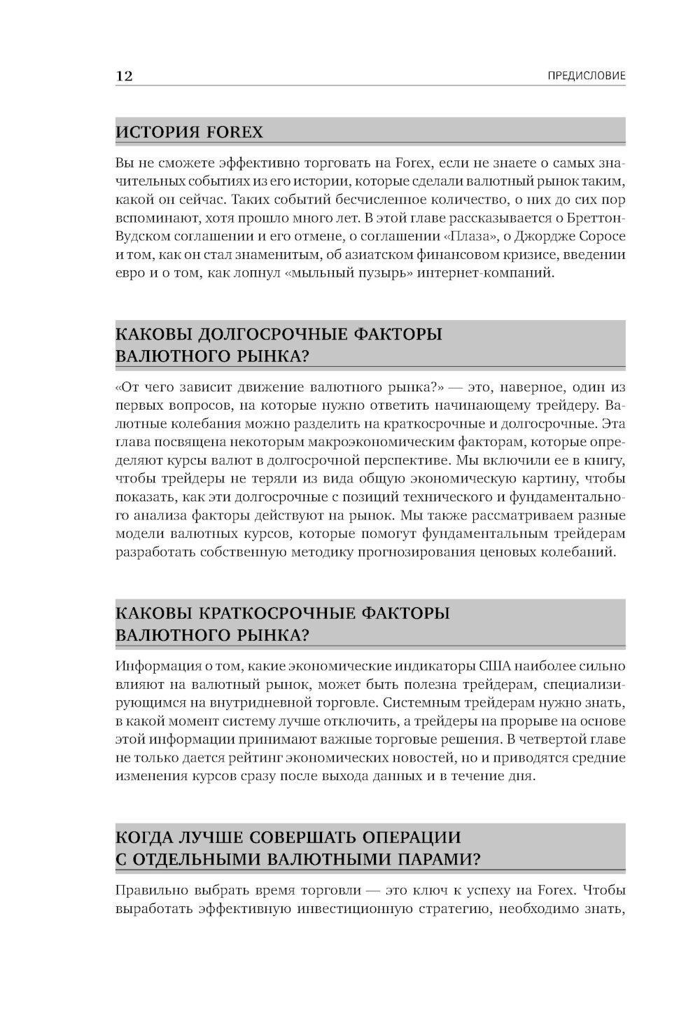 Обо всем, что необходимо знать трейдеру об основах торговли на Forex и характеристиках валют для того, чтобы успешно работать и зарабатывать на валютном рынке. Вы получите исчерпывающую информацию о реальных торговых стратегиях, на основе которых можно разработать собственные, об инфраструктуре валютного рынка, показателях, влияющих на его движение и наиболее актуальных тенденциях последних лет.| Издательство | Альпина ПРО |