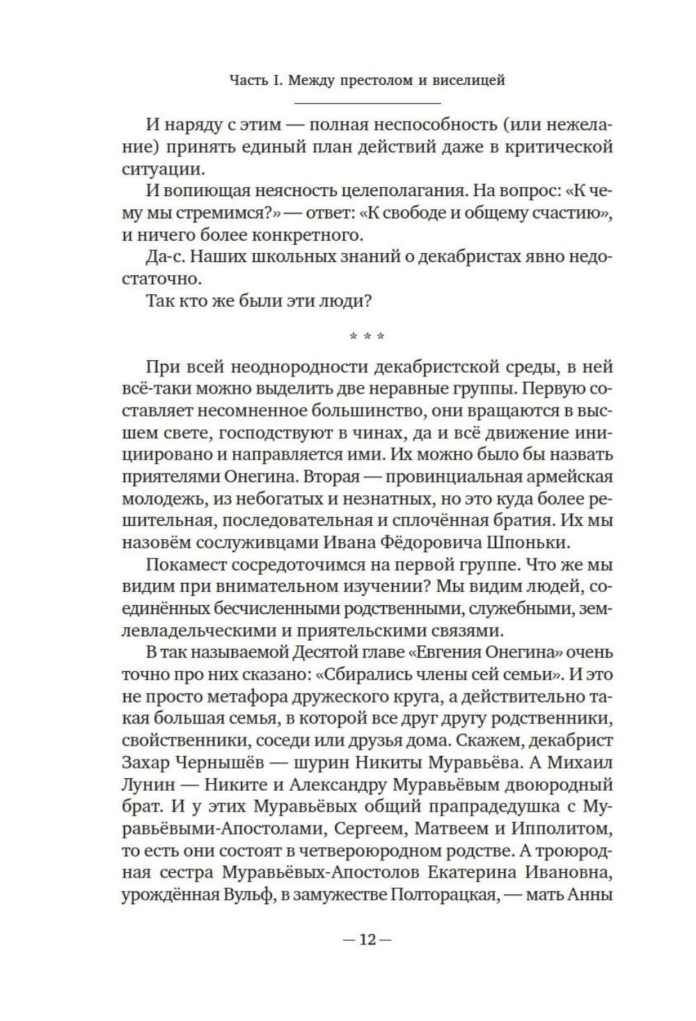 14 декабря 1825 года - мятеж на Сенатской площади - одна из ярчайших страниц русской истории. Однако до сих пор, спустя 200 лет, не утихают споры о причинах, плане, ходе и итогах восстания. Было ли это масштабным выступлением дворян-единомышленников, стремившихся осуществить государственный переворот, - или всего лишь «происшествием», как называли восстание в официальных источниках? Приблизиться к пониманию феномена движения декабристов, не прибегая к готовым идеологическим трактовкам, помогает изучение биографий его участников. Эта книга посвящена судьбам 120 декабристов, осуждённых Верховным уголовным судом. В ходе следствия, которым руководил лично император Николай I, 117 мятежников признались в совершённом преступлении, большинство из них ожидали тюрьма, каторга и ссылка, пятеро были приговорены к смертной казни. Кто же были эти люди, кого из них мятеж вёл к вершинам власти, а кто оказался случайно вовлечён в водоворот политических событий? Как складывалась жизнь декабристов до и после 1825 года, кто из них сумел преодолеть все тяготы наказания, а кто не выдержал суровых испытаний и отчаялся? - об этом в новой книге известного петербургского историка Анджея Иконникова-Галицкого.| Издательство | Азбука |