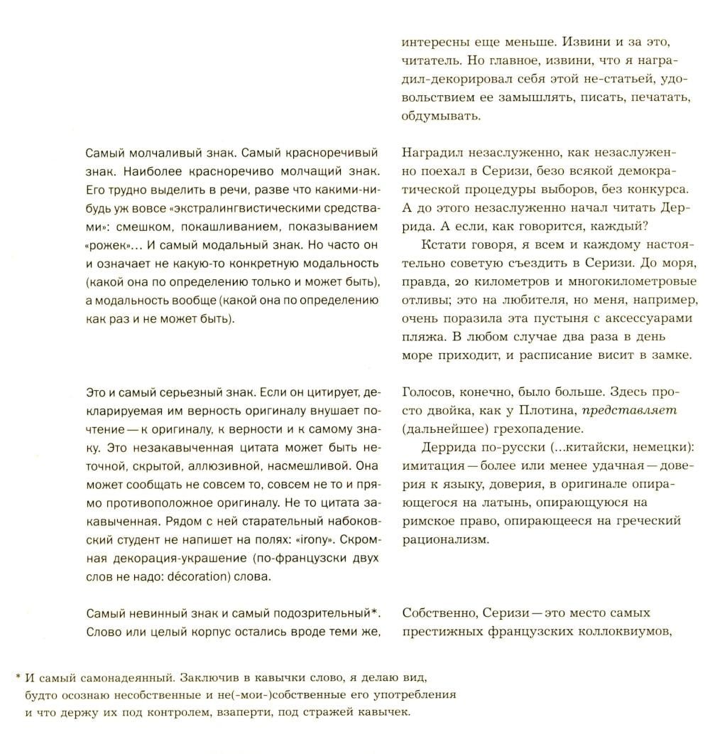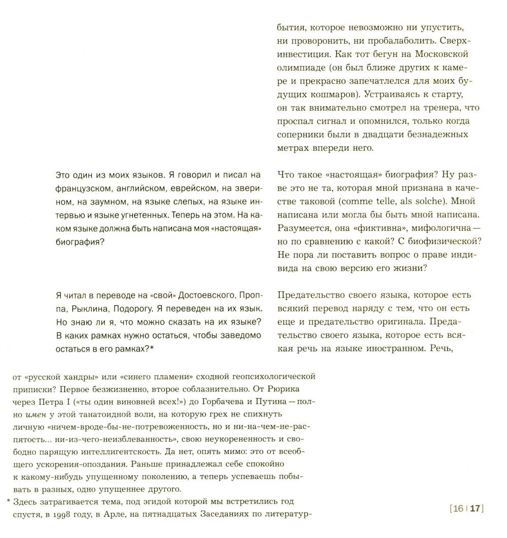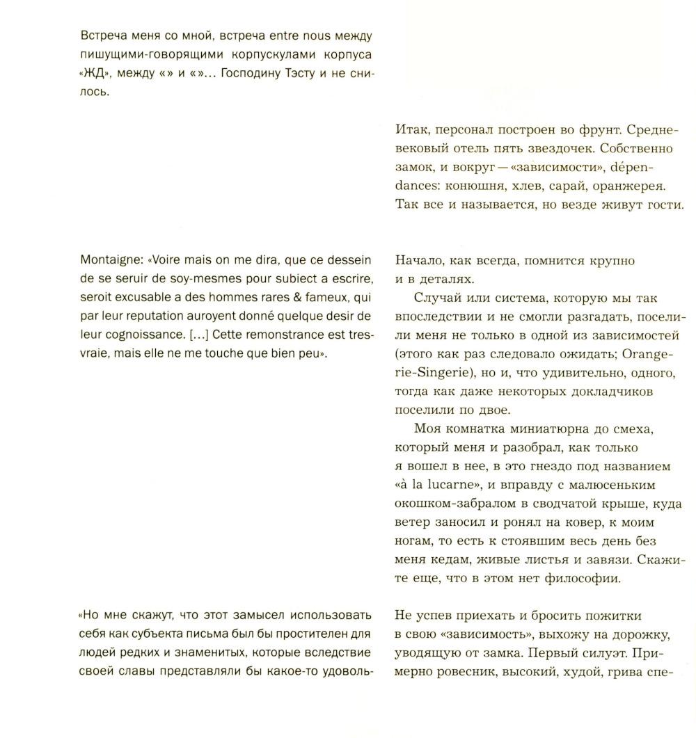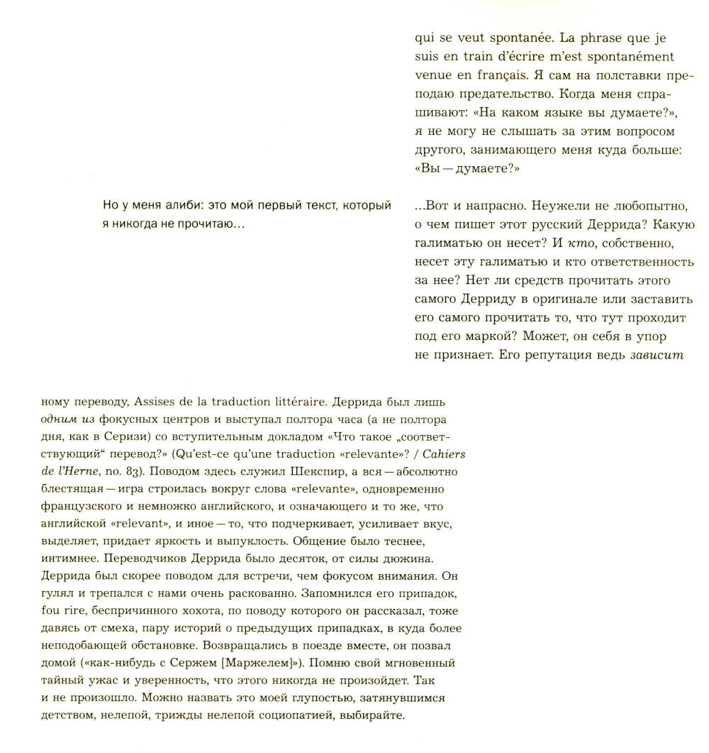 Субъективный репортаж-воспоминание об одном из легендарных философских событий конца ХХ века: 10-дневном коллоквиуме с участием Жака Деррида, посвященном двум темам - животного и автобиографии. Через 20 с лишним лет после коллоквиума, через 15 лет после смерти Жака Деррида автор перечитывает и комментирует сделанный тогда «отчет». За сугубо индивидуальным опытом проступают черты автопортрета целого «философского поколения».| Издательство | Изд. Института Гайдара |
