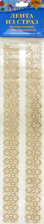 В наборе 2 ленты из страз разной формы, стразы соединены в общий узор и размещены на клеевой основе.