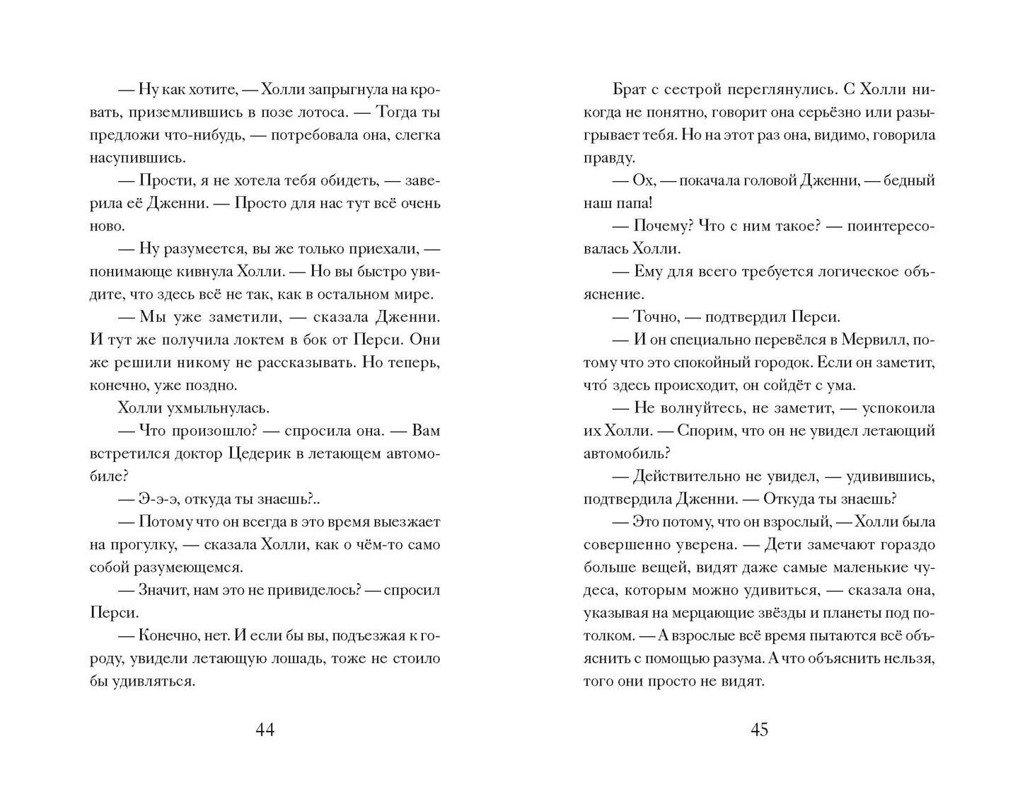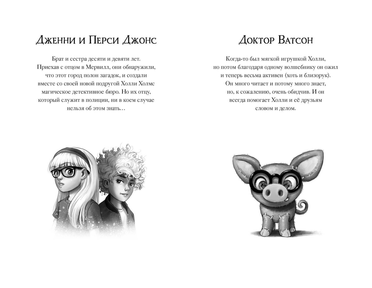Увлекательный фэнтези-детектив для детей, которые обожают загадки, а также все волшебное! Мервилл - маленький городок, который на первый взгляд, особенно если ты взрослый, совсем ничем не примечателен. Однако Дженни и Перси, сестра и брат, которые переезжают в Мервилл с отцом, уже по дороге туда замечают летающий автомобиль. Можно ли назвать городок обычным, когда видишь подобное? Точно нет! Совсем скоро ребята знакомятся с девочкой по имени Холли Холмс, которая, как она говорит, прапраправнучка того самого сыщика, и погружаются в самое настоящее волшебное детективное расследование, ведь на кону пропавший холодильник, содержащий древнюю китайскую тайну.| Издательство | ООО "Издательство "Эксмо" |