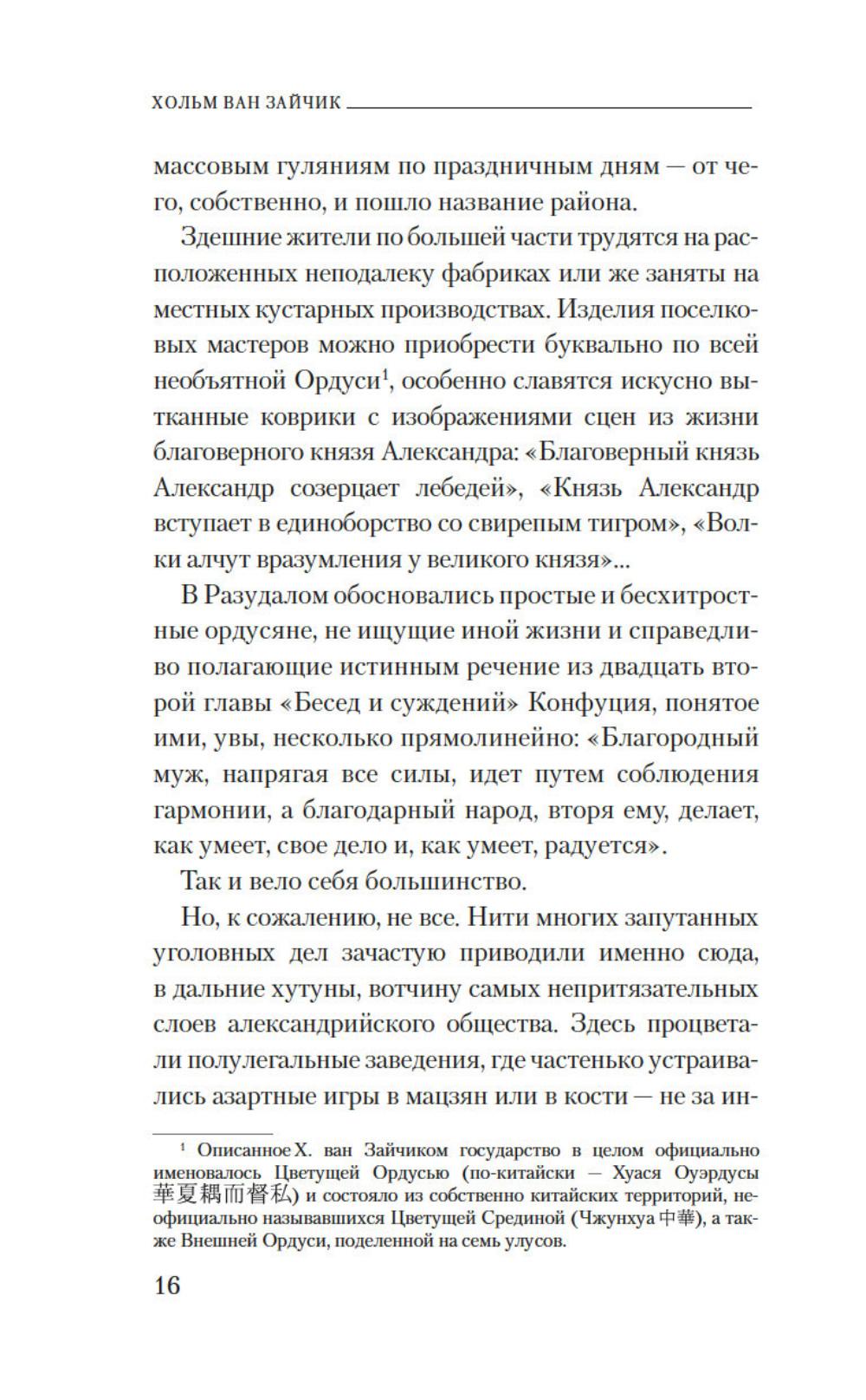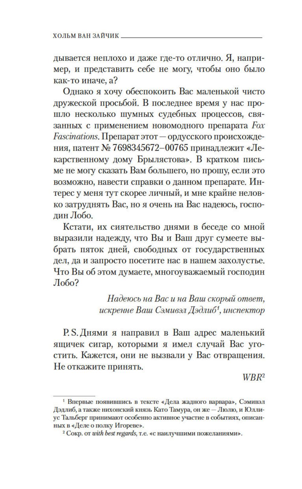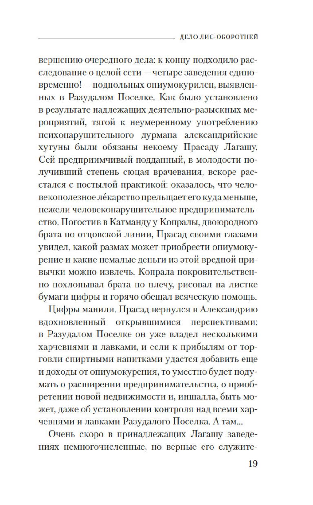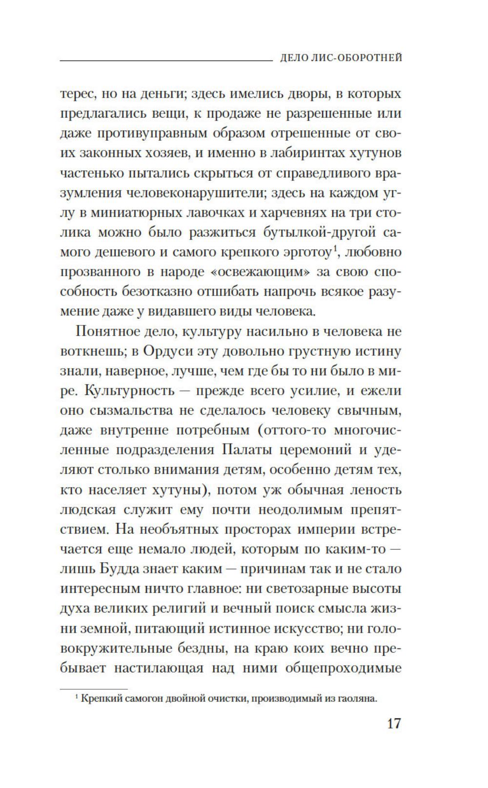СОДЕРЖИТ ИНФОРМАЦИЮ О НАРКОТИЧЕСКИХ ИЛИ ПСИХОТРОПНЫХ ВЕЩЕСТВАХ, УПОТРЕБЛЕНИЕ КОТОРЫХ ОПАСНО ДЛЯ ЗДОРОВЬЯ. ИХ НЕЗАКОННЫЙ ОБОРОТ ВЛЕЧЕТ УГОЛОВНУЮ ОТВЕТСТВЕННОСТЬ. Альтернативная история. Наши дни. В бескрайней Ордуси, горячо любимом всеми населяющими его народами государстве, равноправно существуют и различные религиозные традиции, и высокотехнологичная наука. В этот раз доблестные человекоохранители и друзья Багатур Лобо и Богдан Оуянцев-Сю, завершив расследование боярских самоубийств («Дело о полку Игореве»), действуют раздельно. Вернее, Богдан и вовсе испрашивает отпуск и отправляется на Соловки: искупать грехи трудом и молитвой, тосковать по оставившей его жене Жанне и спать в гробу. А оставшийся в строю Баг, вынужденный смириться с годичным трауром невесты Стаси, по просьбе Интерпола пытается частным образом установить, из чего и как производится приобретшее невероятную популярность лекарство для повышения мужской потенции «Лисьи чары». И странное дело, расследование ведет славного ланчжуна на Соловки, где его друг Богдан оказывается в центре прямо-таки мистических событий, в которых замешаны самые настоящие лисы-оборотни... Время ускоряется, события стремительно следуют друг за другом, и наконец, объединив усилия, славные сыщики раскрывают леденящую кровь тайну великой любви и великого предательства.| Издательство | Иностранка |