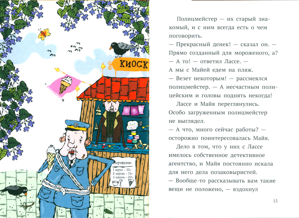 Серия детективов о Лассе и Майе переведена на 40 языков и продана тиражом 12 миллионов экземпляров. Действие всех книг серии происходит в Валлебю - городке с церковью посередине, настолько маленьком, что все здесь друг друга знают. Главные герои - одноклассники Лассе и Майя - открыли тут свое детективное агентство.
