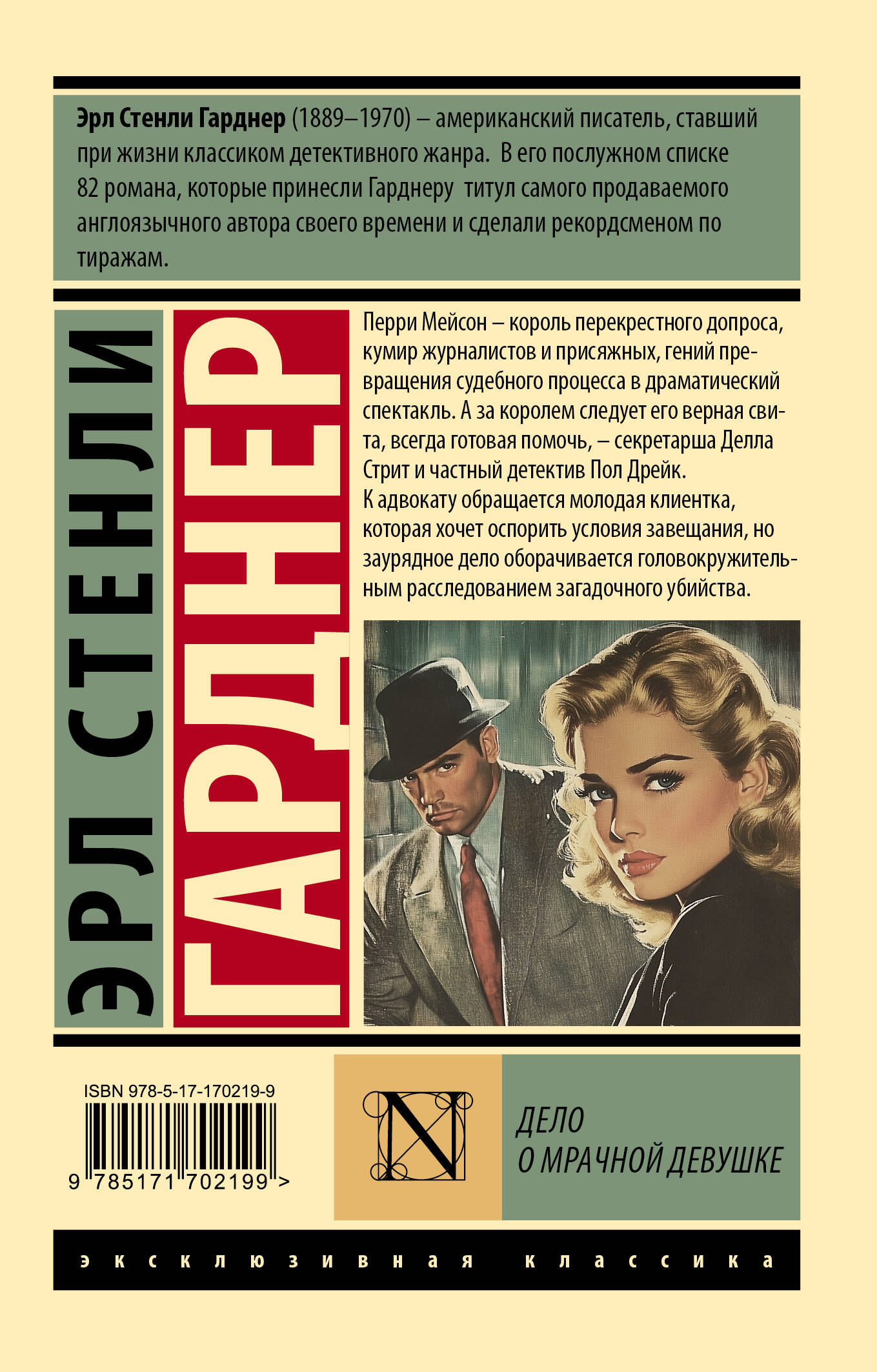 - Эрл Стэнли Гарднер - один из самых известных классиков детективного жанра. За свою полувековую карьеру он написал свыше сотни романов. - Перри Мейсон - самый популярный персонаж автора, он появляется почти в восьми десятках романов, разошедшихся по свету тиражом свыше 300 000 000 экземпляров. Книги цикла о Перри многократно экранизировались, последняя телевизионная адаптация выходила на HBO Max в начале двадцатых годов и доступна на сервисе «Амедиатека». - Перри Мейсон - адвокат, который параллельно с защитой своих клиентов в суде проводит собственное расследование преступлений, в которых их обвиняют. На этот раз Перри предстоит помочь молодой девушке, которая пытается оспорить условия завещания. - Издание в серии «Эксклюзивная классика» - в удобном карманном формате и привычном оформлении.| Издательство | Издательство "АСТ" |