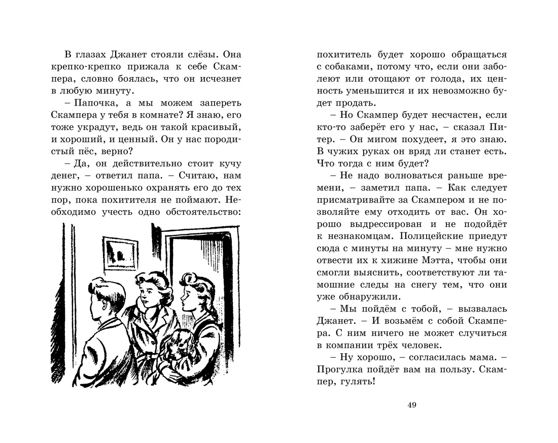 Случилось невероятное! «Секретной семёрке» грозит превратиться в «Секретную шестёрку»! И пока ребята выясняли отношения, пропал всеобщий любимец старина Скампер! Неужели он тоже стал жертвой собачьего вора, который похитил в округе уже несколько собак? Но как его найти, если вор не оставил никаких улик, кроме огромных следов на снегу…