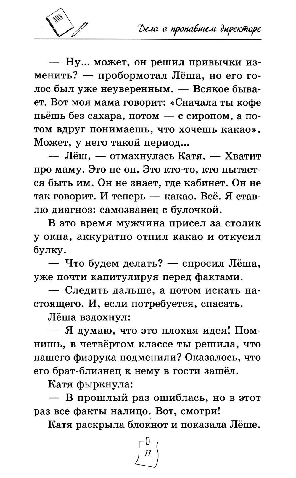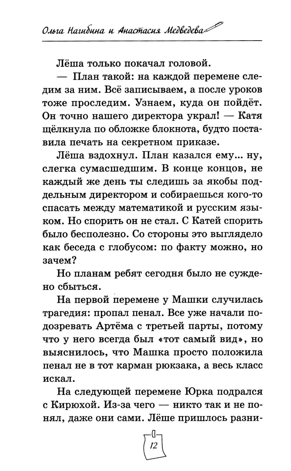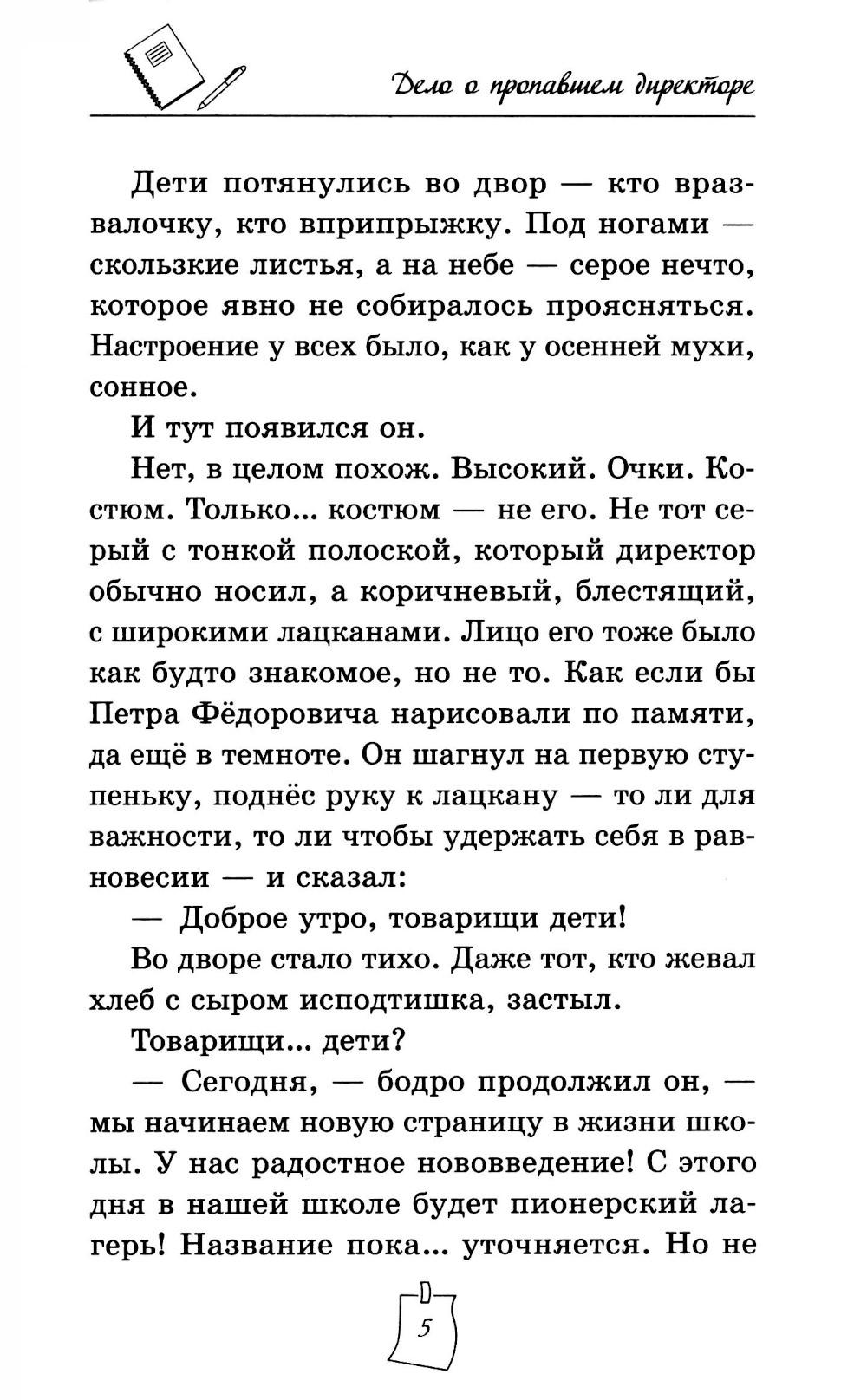 Лёша Белов просто хотел спокойно пережить понедельник, но его подруга Катя - прирождённый сыщик - сразу поняла: что-то не так. Настоящий директор никогда не надел бы блестящий коричневый костюм и не назвал учеников «товарищи дети». А уж тем более не объявил бы о пионерском лагере в обычной современной школе. Теперь двое друзей ведут собственное расследование. Они заметают следы, расшифровывают записи, пробираются в музей и даже учатся открывать замки. Но чем глубже они копают, тем опаснее становится игра. Пропавший алмаз, таинственная архивистка, директор-самозванец и учительница, которая оказывается вовсе не той, кем кажется...| Издательство | Феникс |