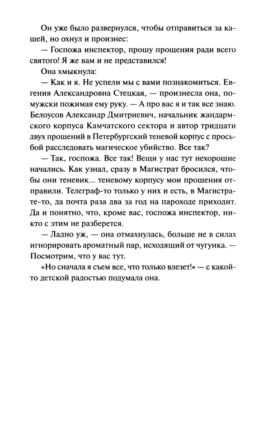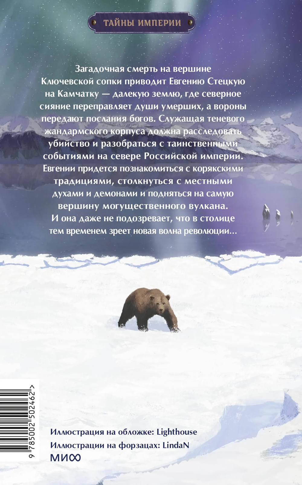 Загадочная смерть на вершине Ключевской сопки приводит Евгению Стецкую на Камчатку - далекую землю, где северное сияние переправляет души умерших, а вороны передают послания богов. Служащая теневого жандармского корпуса должна расследовать убийство, но для этого сперва надо разобраться в происходящем на севере Российской империи. Евгении придется познакомиться с корякскими традициями, столкнуться с местными духами и демонами и подняться на самую вершину могущественного вулкана. И она даже не подозревает, что в столице тем временем зреет новая волна революции…| Издательство | Манн, Иванов и Фербер |