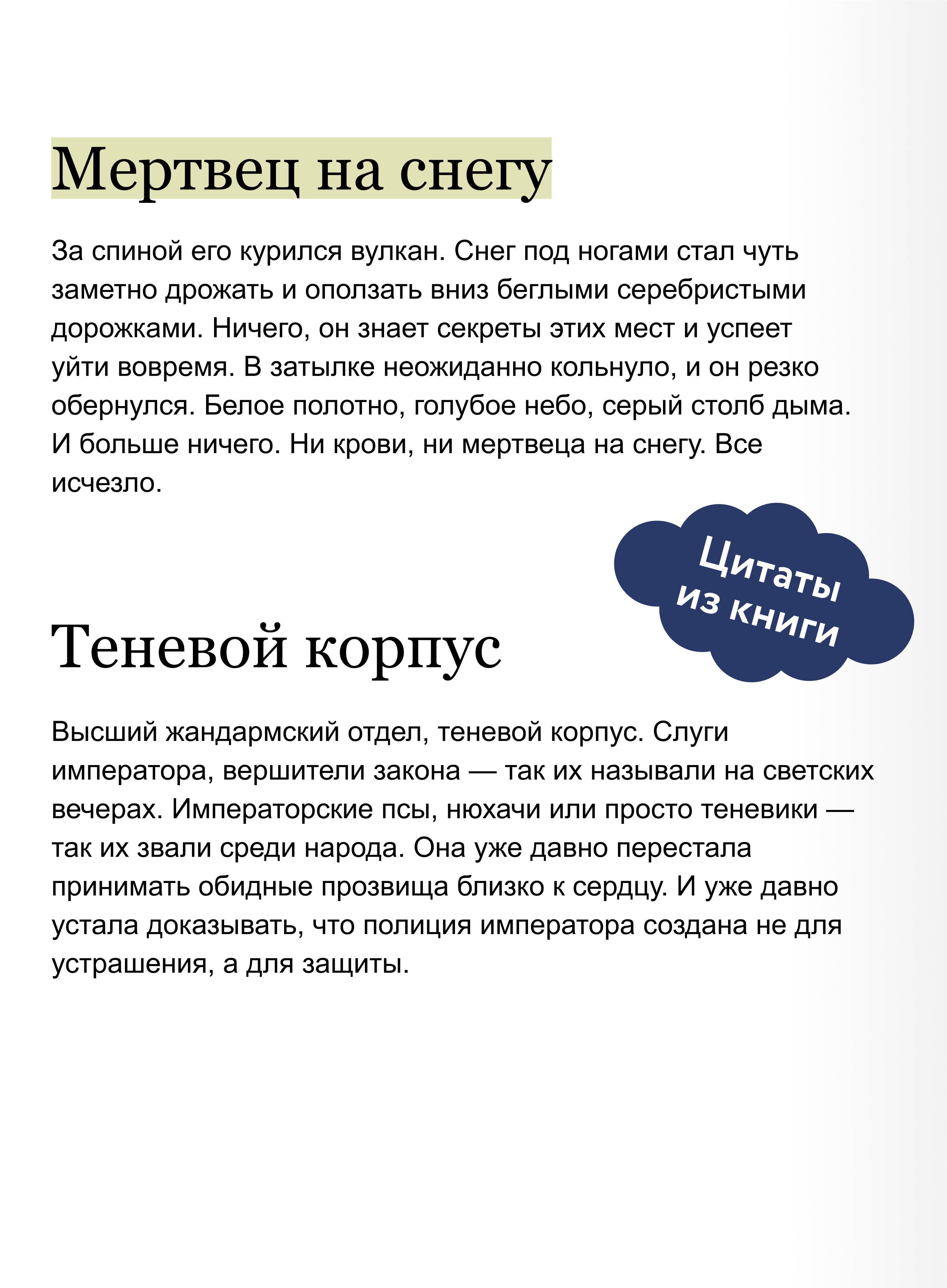 Детективное фэнтези в сеттинге предреволюционной Российской империи Героиня отправляется на Камчатку для расследования таинственных убийств В основе - мифология коренных народов Камчатки, корякские сказки и легенды