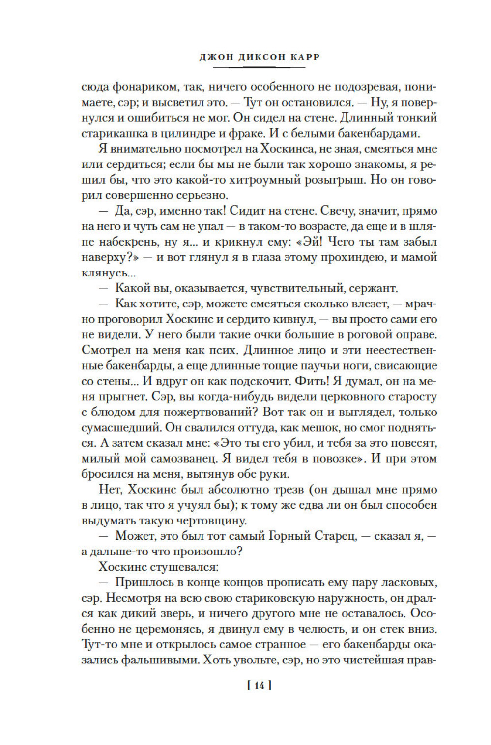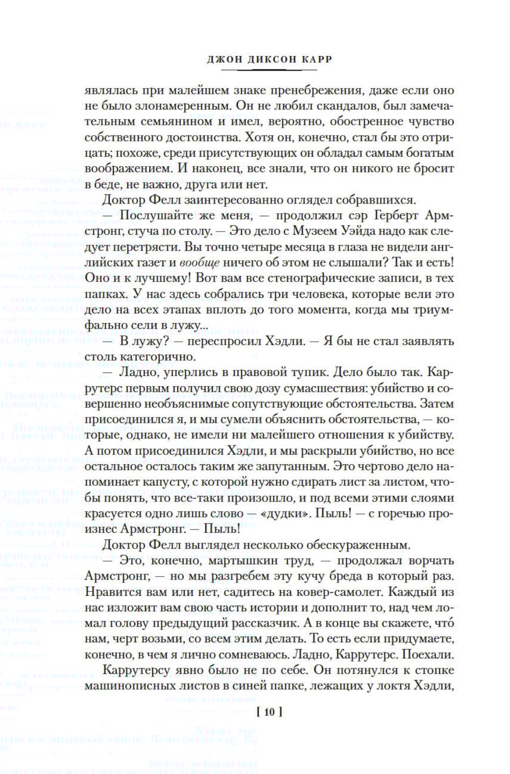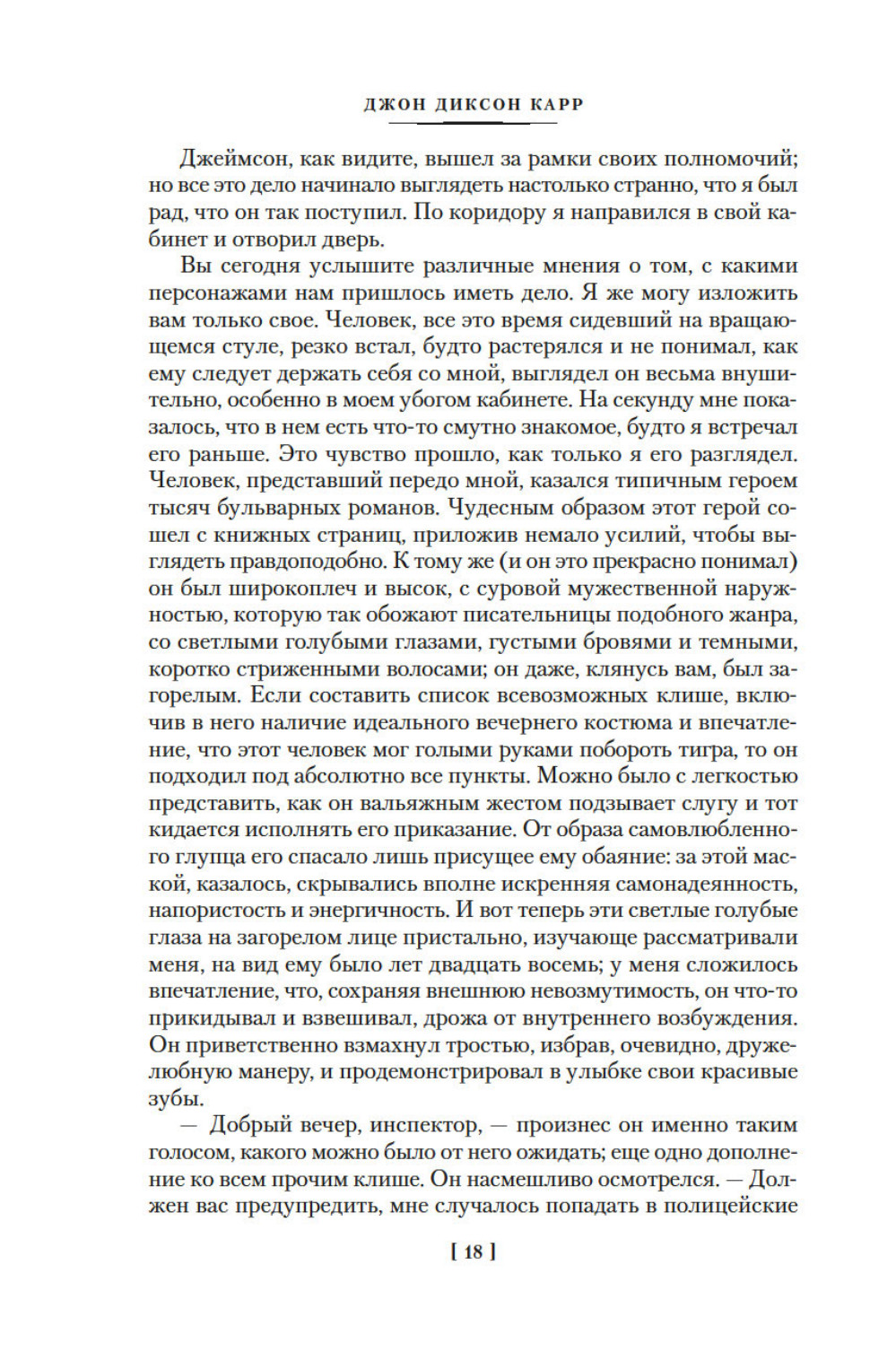 Золотой век детектива подарил нам множество звездных имен. Произведения таких писателей, как Агата Кристи, Гилберт Честертон, Эрл Стэнли Гарднер, Рекс Стаут, развивали и совершенствовали детективный жанр, их романы, безоговорочно признанные классикой, по сей день любимы читателями и являются эталоном качества для последующих поколений авторов детективных историй. Почетное место в этой плеяде по праву принадлежит Джону Диксону Карру (1906-1977) - виртуозному мастеру идеально построенных «невозможных преступлений в запертой комнате». В 1933 году в романе «Ведьмино Логово» Джон Диксон Карр впервые представил публике сыщика-любителя доктора Гидеона Фелла. Внешность героя, предположительно, была списана с другого корифея детективного жанра - Гилберта Честертона, а его заслуги в истории детективного жанра, по мнению большинства почитателей творчества Карра, поистине вызывают уважение. Так, писатель Кингсли Эмис в своем эссе «Мои любимые сыщики» назвал доктора Фелла «одним из трех великих преемников Шерлока Холмса». В настоящий сборник вошли седьмой, восьмой и девятый романы из цикла, повествующего о приключениях доктора Фелла: «Дело «Тысячи и одной ночи»» (1936), «Не будите мертвеца» (1938) и «Изогнутая петля» (1938).| Издательство | Азбука |