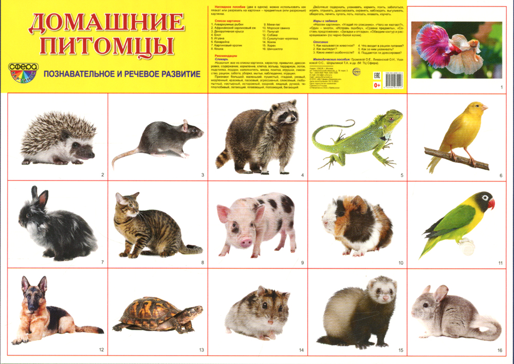 Аннотация: Демонстрационные картинки. Домашние питомцы: 16 демонстрационных картинок с текстом
