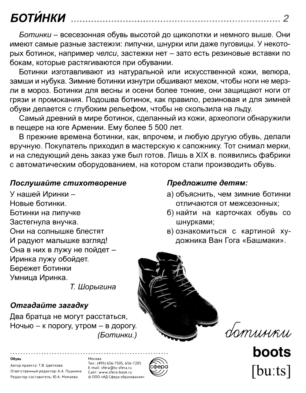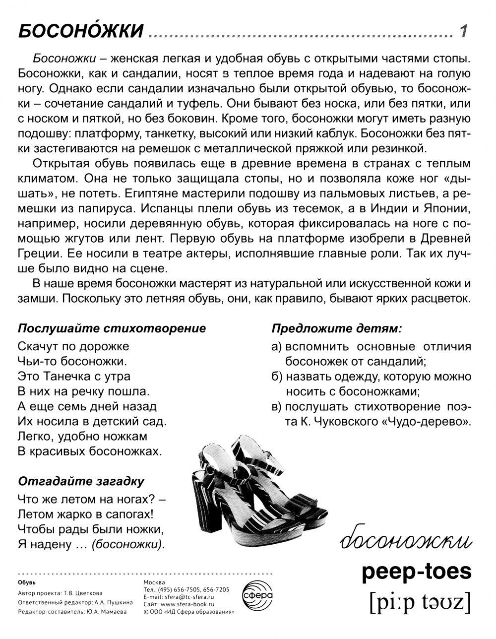 Аннотация: Демонстрационные картинки. Обувь: 16 демонстрационных картинок с текстом