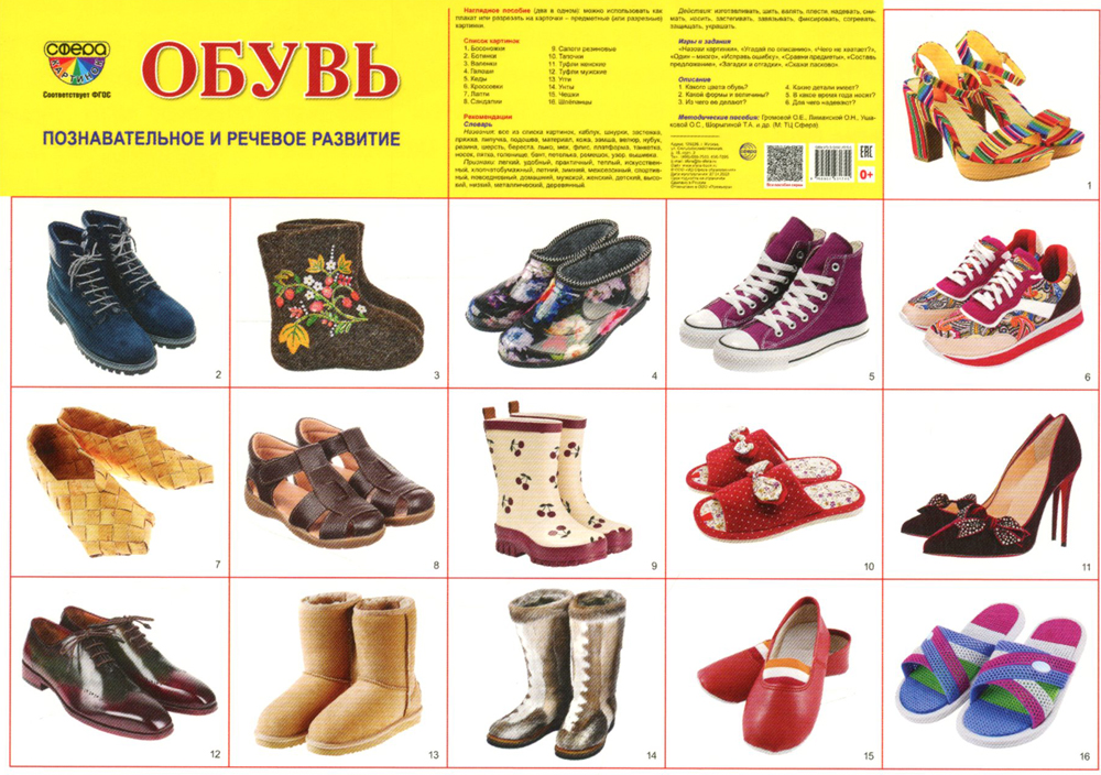Демонстрационные картинки. Обувь: 16 демонстрационных картинок с текстом