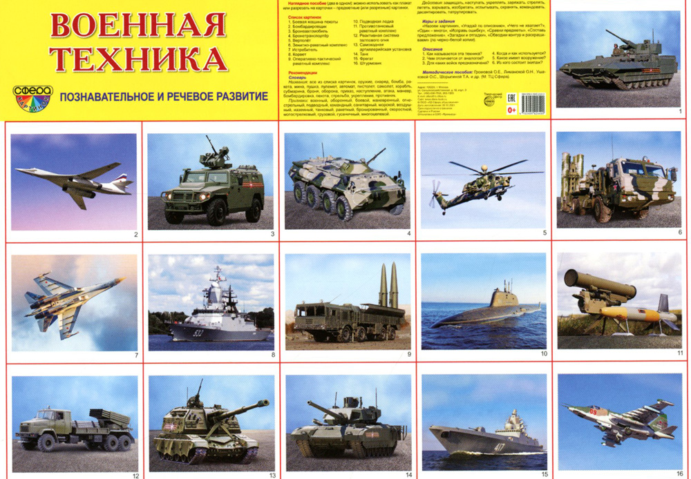 Аннотация: Демонстрационные картинки. Военная техника: 16 демонстрационных картинок с текстом на обороте