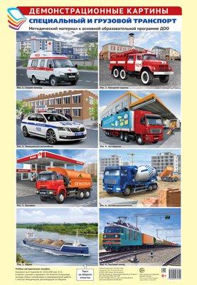 Демонстрационные картины А3. Специальный и грузовой транспорт.Методич. мат-л к ООП ДОО 8 картин