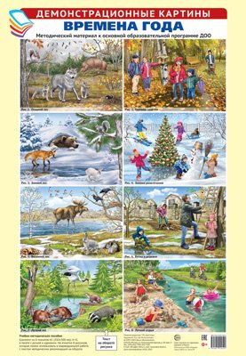 Аннотация: Демонстрационные картины А3. Времена года. Методический материал к основной образовательной программе ДОО 8 картин А3+, этикетка с текстом заданий на обороте