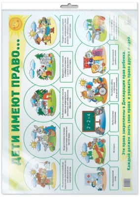 Плакат дает представление о правах детей. Плакат прекрасно иллюстрирован, имеет удобный формат А2, что позволяет изучать тему не только на индивидуальных, но и на групповых занятиях в образовательных учреждениях.| Издательство | М.: ТЦ СФЕРА |