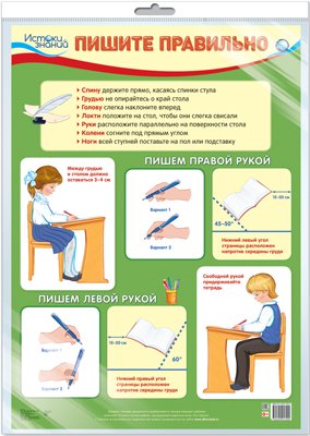 Демонстрационный материал предназначен для работы с детьми в школе и дома. Показывает правильную посадку ребенка, положение листа бумаги и ручки как для правшей так и для левшей.| Издательство | М.: ТЦ СФЕРА |