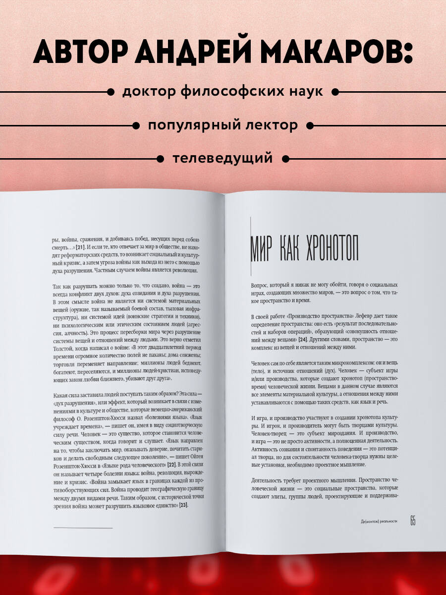 Что есть наша реальность - матрица, алгоритмы чужих игр или проявление нашей воли и выбранные нами стратегии? Люди - куклы богов, рабы обстоятельств, пленники судьбы или герои, которые сами творят свою жизнь? Философы, ученые, художники и писатели веками ломают копья на этих вопросах. В этой книге собраны все теории, гипотезы, исторические пассажи и современные лайфхаки для того, чтобы читатель сам увидел, как формируется его мировоззрение, и понял, как автоматические программы и чужой опыт закладываются в наше сознание, навязывая нам определенные модели, мотивы и желания. Осознав роль винтика в огромной системе координат, каждый может увидеть смысл и найти методы, чтобы выйти из этой матрицы, поднявшись над уготованной ему судьбой. Эта книга поможет понять, как перестать быть куклой и стать режиссером своей собственной жизни. Андрей Макаров - профессор, доктор философских наук, культуролог, популярный лектор, телеведущий и публицист. Специализируется на практической философии, философии культур, теории памяти и теории поколений.| Издательство | ООО "Издательство "Эксмо" |