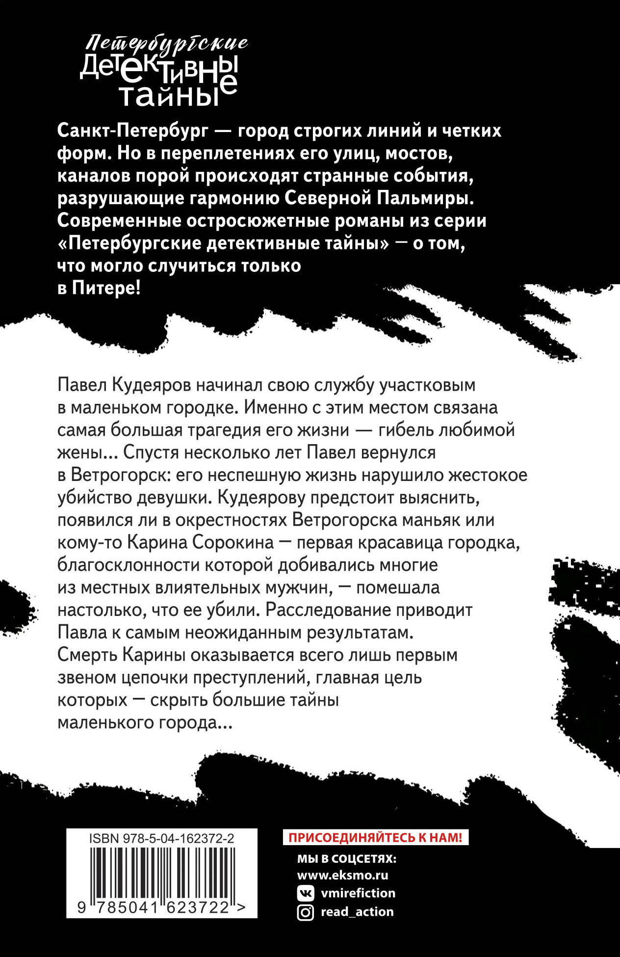 Павел Кудеяров начинал свою службу участковым в маленьком городке. Именно с этим местом связана самая большая трагедия его жизни - гибель любимой жены… Спустя несколько лет Павел вернулся в Ветрогорск: его неспешную жизнь нарушило жестокое убийство девушки. Кудеярову предстоит выяснить, появился ли в окрестностях Ветрогорска маньяк или кому-то Карина Сорокина - первая красавица городка, благосклонности которой добивались многие из местных влиятельных мужчин, - помешала настолько, что ее убили. Расследование приводит Павла к самым неожиданным результатам. Смерть Карины оказывается всего лишь первым звеном цепочки преступлений, главная цель которых - скрыть большие тайны маленького города… Екатерина Островская - профессиональный журналист, литератор и кинодраматург, живет и работает в Санкт-Петербурге. Окончила факультет журналистики СПбГУ. В авторском портфеле Екатерины Островской уже более 30 остросюжетных романов. Она увлекается музыкой, историей, горными лыжами. И, конечно, продолжает работу над новыми книгами.| Издательство | ООО "Издательство "Эксмо" |
