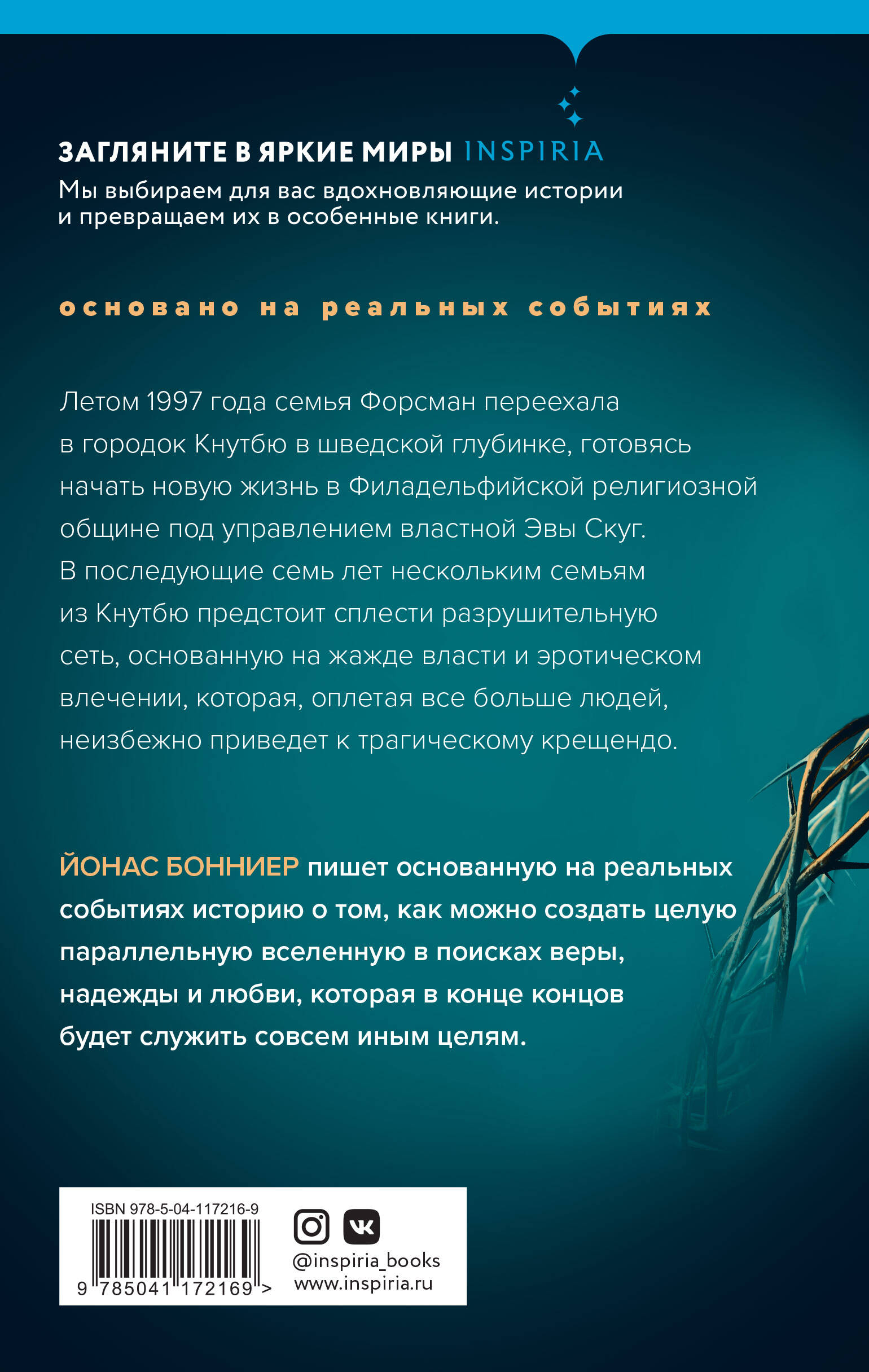 Рано или поздно громкие происшествия становятся историей, которую необходимо рассказать. Йонас Бонниер - прекрасный рассказчик, способный исследовать самые потайные уголки души и раскрыть темноту, живущую в неприметном человеке. Летом 1997 года семья Форсман переехала в городок Кнутбю в шведской глубинке, готовясь начать новую жизнь в Филадельфийской религиозной общине под управлением властной Эвы Скуг. В последующие семь лет нескольким семьям из Кнутбю предстоит сплести разрушительную сеть, основанную на жажде власти и эротическом влечении, которая, оплетая все больше людей, неизбежно приведет к трагическому крещендо. Йонас Бонниер пишет основанную на реальных событиях историю о том, как можно создать целую параллельную вселенную в поисках веры, надежды и любви, которая в конце концов будет служить совсем иным целям.| Издательство | ООО "Издательство "Эксмо" |