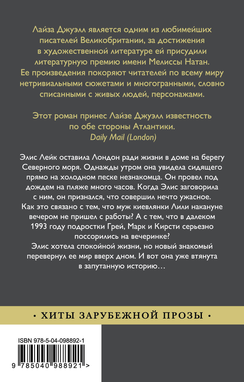Элис Лейк оставила Лондон ради жизни в старинном доме на берегу Северного моря. Однажды утром на пляже она увидела сидящего прямо на холодном песке незнакомца. Он провел там много часов. Когда Элис попыталась ему помочь, он признался, что совершил нечто ужасное. Как это связано с тем, что муж киевлянки Лили накануне вечером не пришел с работы? А с тем, что в далеком 1993 году подростки Грей, Марк и Кирсти серьезно поссорились на вечеринке? Элис хотела спокойной жизни, но загадочный незнакомец перевернул ее мир вверх дном. И вот она уже втянута в очень странную историю...| Издательство | ООО "Издательство "Эксмо" |