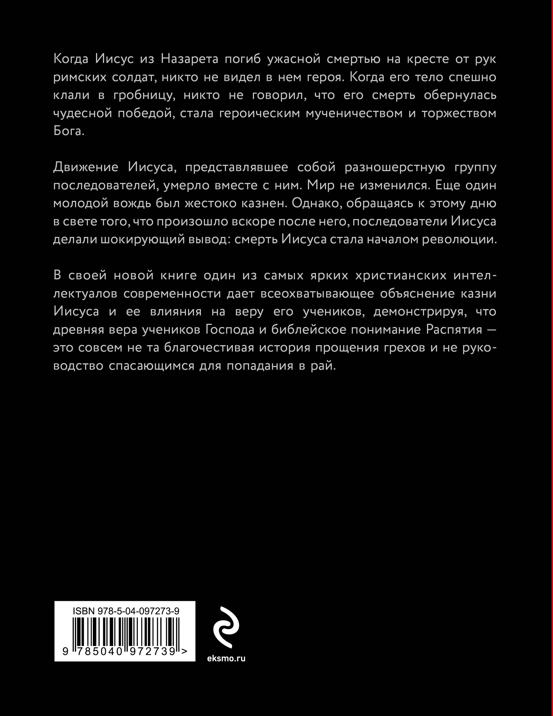 История распятия Иисуса и символ креста даже сегодня, когда принято говорить о кризисе христианства, сохраняют огромную силу влияния на нас и нашу жизнь. А что же на самом деле случилось тогда, 2000 лет назад, и есть ли основания говорить, что в тот день произошло нечто такое, что радикально изменило мир? Когда Иисус из Назарета погиб ужасной смертью на кресте от рук римских солдат, никто не видел в нем героя. Когда его тело спешно клали в гробницу, никто не говорил, что его смерть обернулась чудесной победой, стала героическим мученичеством. Его движение, представлявшее собой разношерстную группу последователей, умерло вместе с ним. Мир не изменился. Еще один молодой вождь был жестоко казнен. Однако, обращаясь к этому дню в свете того, что произошло вскоре после него, последователи Иисуса делали шокирующий вывод: смерть Иисуса стала началом революции.